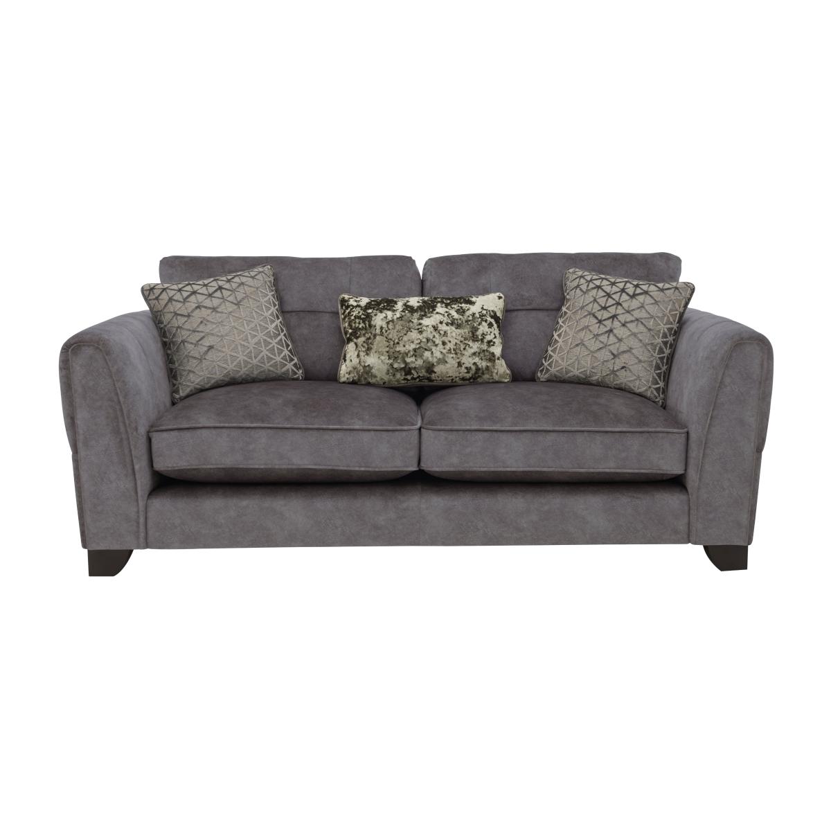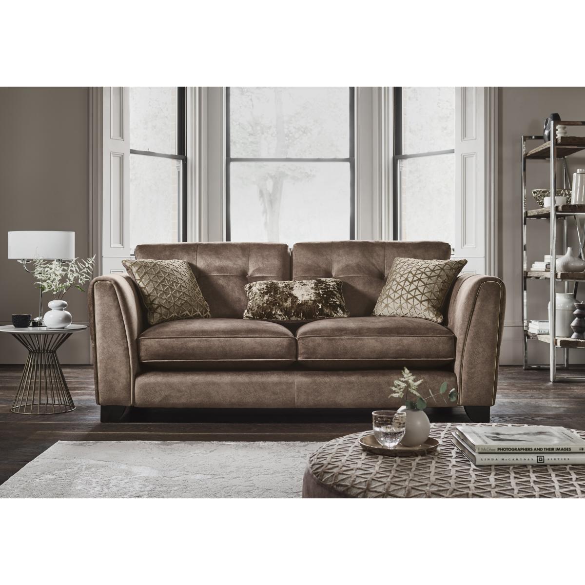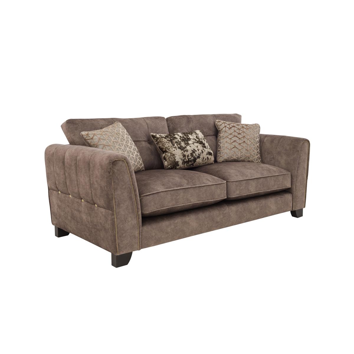 The perfect blend of modern elegance and luxury comfort, the Mariah Collection was designed to stand out. Grand in scale and contemporary in style, its generous, deep seats are upholstered in a unique fabric with the industrial look of leather but the incredible softness of luxury velvet for a truly indulgent lounging experience. Encore foam seats are sumptuously comfortable and keep their shape perfectly without re-plumping and a beautiful array of feather filled scatter cushions with a velvety sheen create a cushioned heaven. The elegant arms are decorated with delicate fluting and each piece comes with the option of brass or chrome studding and piping for a touch of opulence. Available in a variety of plush, gorgeous colours to complement the modern home. Handcrafted in the UK and exclusive to Furniture Village. Glam style and amazing comfort – that’s this roomy three-seater classic back Mariah sofa. You’ll love the sink-in seats, the feather-filled scatters, and the soft, nubuck leather-like upholstery. Why you'll love it This contemporary 3-seater fabric classic back sofa is a fabulous choice. Part of our gorgeous Oh So Glam collection. Sumptuous style, serious comfort, superb quality. Luxurious yet durable upholstery looks and feels like nubuck leather. Generously proportioned and ready for lounging with deep roomy seats. Exceptional craftsmanship – firm seat edges, solid hardwood frame, dark wood feet. Sink-in soft seat cushions come with our 5-year plumpness guarantee. They’re filled with Encore foam so they spring back into shape, time after time. The high, gently curved arms feature hand-sewn fluting. Opt for brass-effect or chrome-effect piping and studs – at no extra cost. 3 reversible feather-filled scatters included – 2 square cushions and a bolster cushion. Handmade in the UK and only at Furniture Village. This 3-seater fabric classic back sofa is part of our Oh So Glam Mariah range. What you need to know Medium comfort level. Seat suspension: sprung with firm front edges. Seat cushioning: Encore foam. Back support: webbing. Back cushioning: fibre. For ease of delivery, please ensure there is sufficient access to your home. Some fabrics can show wear on areas of more use or in direct sunlight. Plump, turn and rotate seat and back cushions regularly. Please read our upholstery care guide for more advice. Shop our Mariah range for a huge choice of sofa, chair and footstool styles, sizes and fabrics. Item code: MARH3S--CB-003