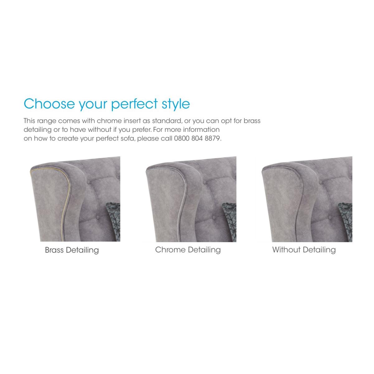 The perfect blend of modern elegance and luxury comfort, the Mariah Collection was designed to stand out. Grand in scale and contemporary in style, its generous, deep seats are upholstered in a unique fabric with the industrial look of leather but the incredible softness of luxury velvet for a truly indulgent lounging experience. Encore foam seats are sumptuously comfortable and keep their shape perfectly without re-plumping and a beautiful array of feather filled scatter cushions with a velvety sheen create a cushioned heaven. The elegant arms are decorated with delicate fluting and each piece comes with the option of brass or chrome studding and piping for a touch of opulence. Available in a variety of plush, gorgeous colours to complement the modern home. Handcrafted in the UK and exclusive to Furniture Village. Sophisticated and elegant, this chair is roomier than the average accent chair and is upholstered in the most gorgeous nubuck leather-like fabric. Why you'll love it This fabric accent chair makes a very stylish statement. Part of our gorgeous Oh So Glam collection. Sumptuous style, serious comfort, superb quality. Luxurious yet durable upholstery looks and feels like nubuck leather. Generously proportioned and ready for lounging with a deep roomy seat. Exceptional craftsmanship – firm seat edge, solid hardwood frame, dark wood feet. Sink-in soft seat cushion comes with our 5-year plumpness guarantee. It’s filled with Encore foam so it springs back into shape, time after time. Elegantly curved winged arms and buttoning. Comes with a reversible feather-filled scatter cushion. Handmade in the UK and only at Furniture Village. This fabric accent armchair is part of our Oh So Glam Mariah range. What you need to know Medium comfort level. Seat suspension: sprung with firm front edge. Seat cushioning: Encore foam. Back support: webbing. Back cushioning: fibre. For ease of delivery, please ensure there is sufficient access to your home. Some fabrics can show wear on areas of more use or in direct sunlight. Plump, turn and rotate seat and back cushions regularly. Please read our upholstery care guide for more advice. Shop our Mariah range for a huge choice of sofa, chair and footstool styles, sizes and fabrics. Item code: MARHACHRFAB-002