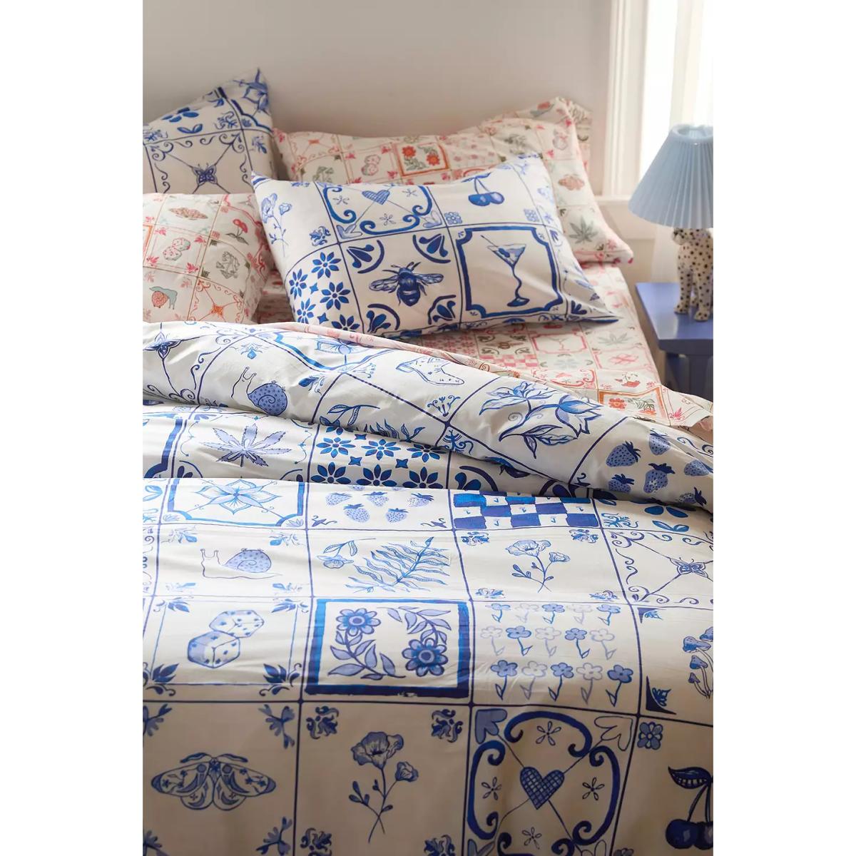 Refresh your bedroom with the Mariana Tile Duvet Set featuring an all-over reversible tile motif with painted icons throughout. Featuring a matching duvet cover and pillowcases. **Content + Care** \- 100% Cotton \- Machine wash **Size** \- Single (includes 1 pillowcase): 135cm (W) x 200cm (H) \- Double (includes 2 pillowcases): 200cm (W) x 200cm (H) \- King (includes 2 pillowcases): 230cm (W) x 220cm (H) \- Pillowcase: 75cm x 50cm