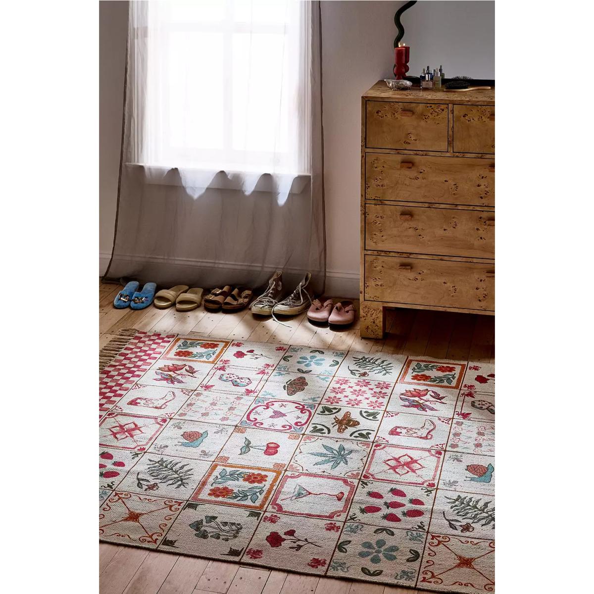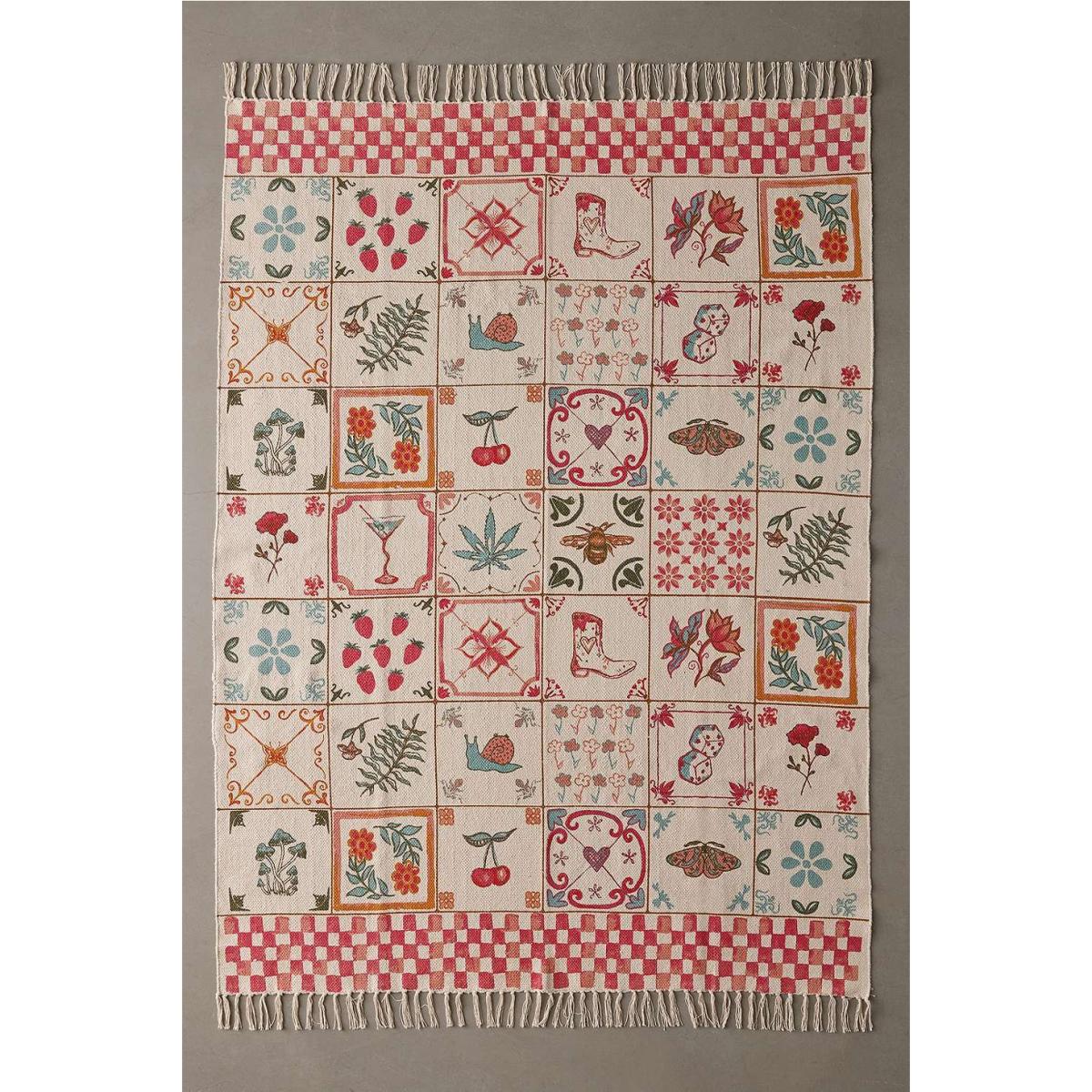 Elevate any space with this pretty 5x7 rug. It's hand woven from cotton with a super cute tile print, finished with fringed edges. **Content + Care** \- 100% Cotton- Spot clean **Size** \- 5x7ft