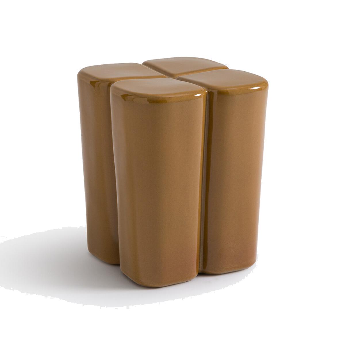 I love this little ceramic side table for its sleek, sculptural form and warm, earthy hue. It works particularly well in contemporary and eclectic interiors, where its statement shape can add visual interest without overwhelming the space. Practical styling tips include pairing it with textured textiles or greenery for contrast, or using it as a charming perch for a book, lamp, or decorative object. Its compact size makes it ideal for smaller spaces, such as beside a sofa or bed, offering both functionality and a touch of character to your decor.