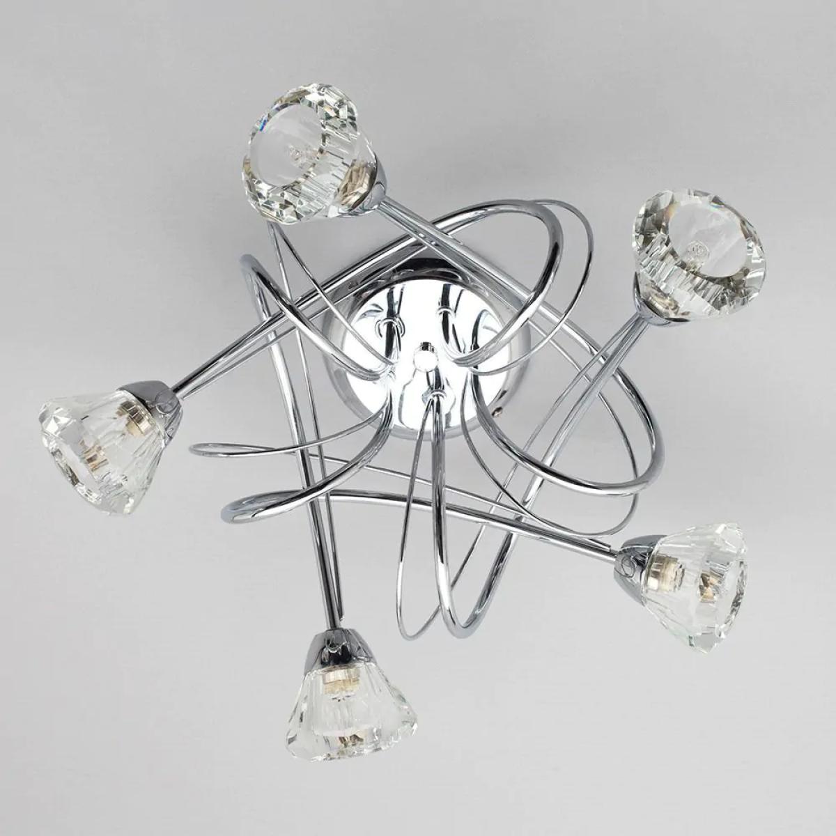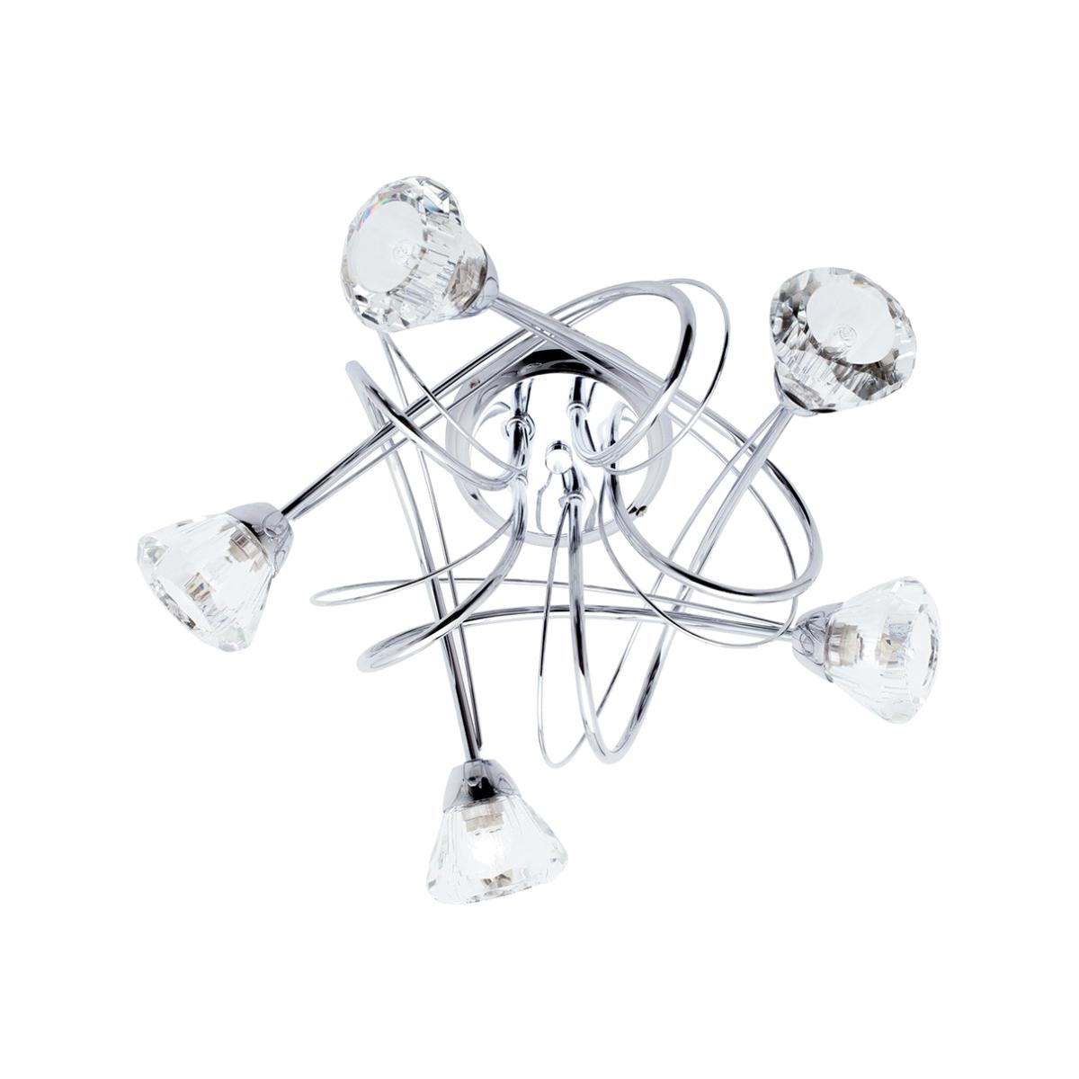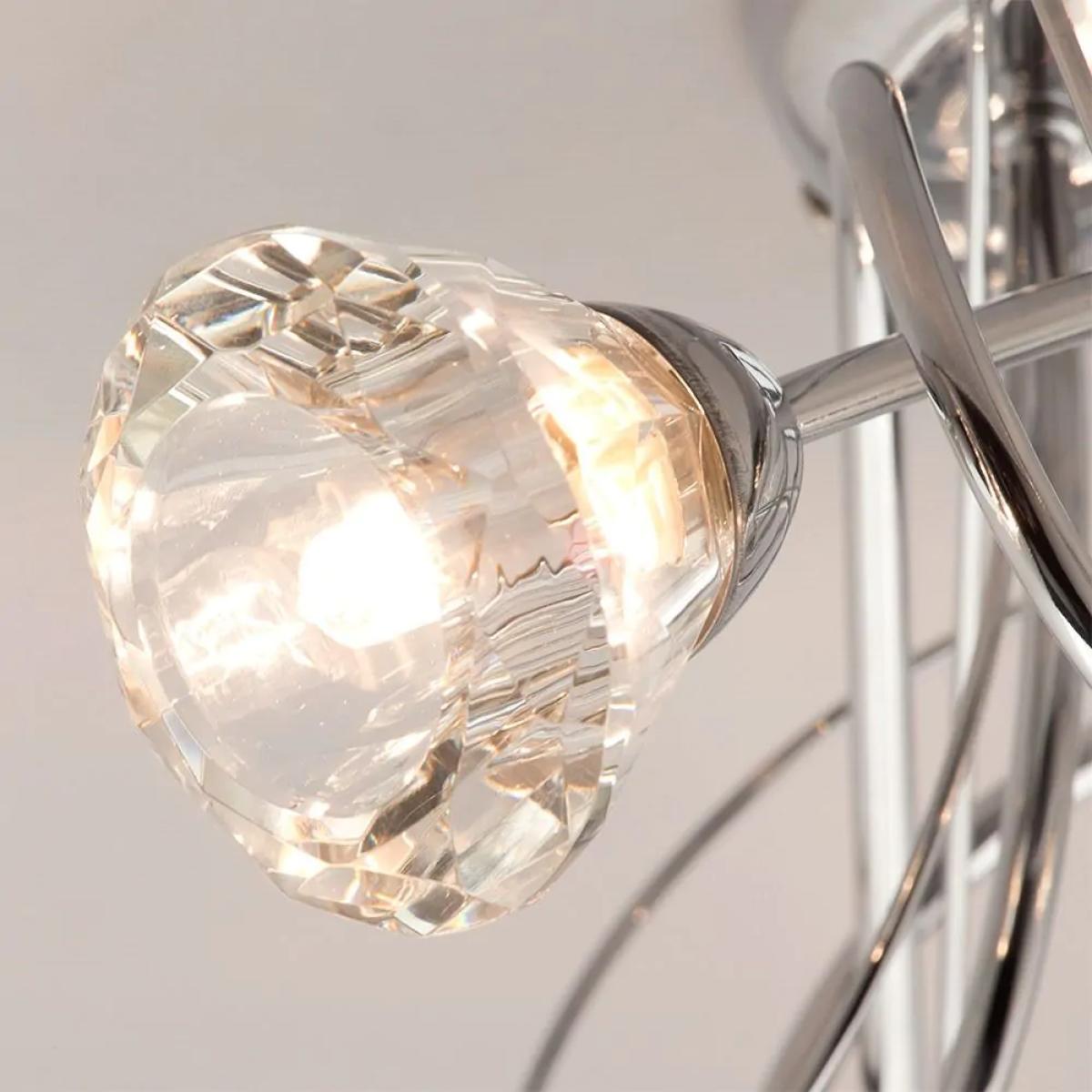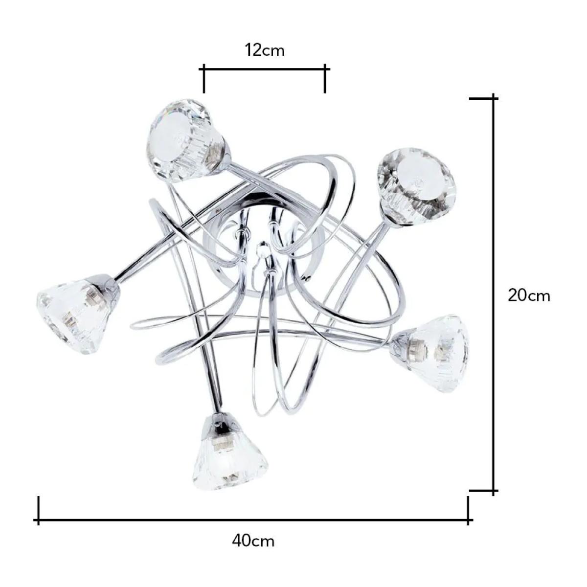 Elegant modern design in a compact, practical package, the Marianne 5 light flush ceiling light in chrome is a fantastic addition to any urban décor! An arrangement of curving chrome arms reveals the 5 lights and faceted glass shades, which give a softer glow to the light for a relaxing ambience across the room. Finished in a clean chrome colour, the fitting is a perfect fit in any a sophisticated and updated setting.