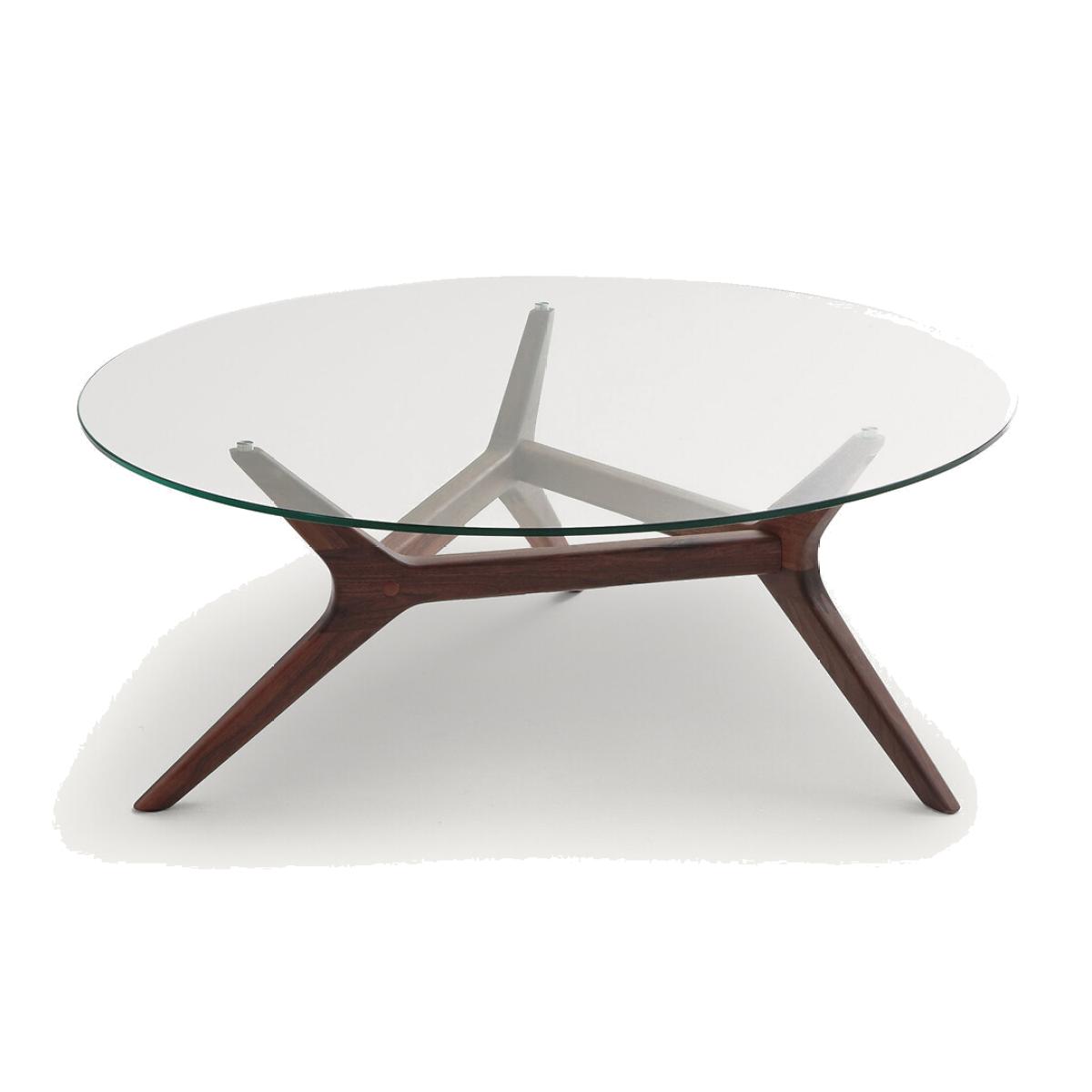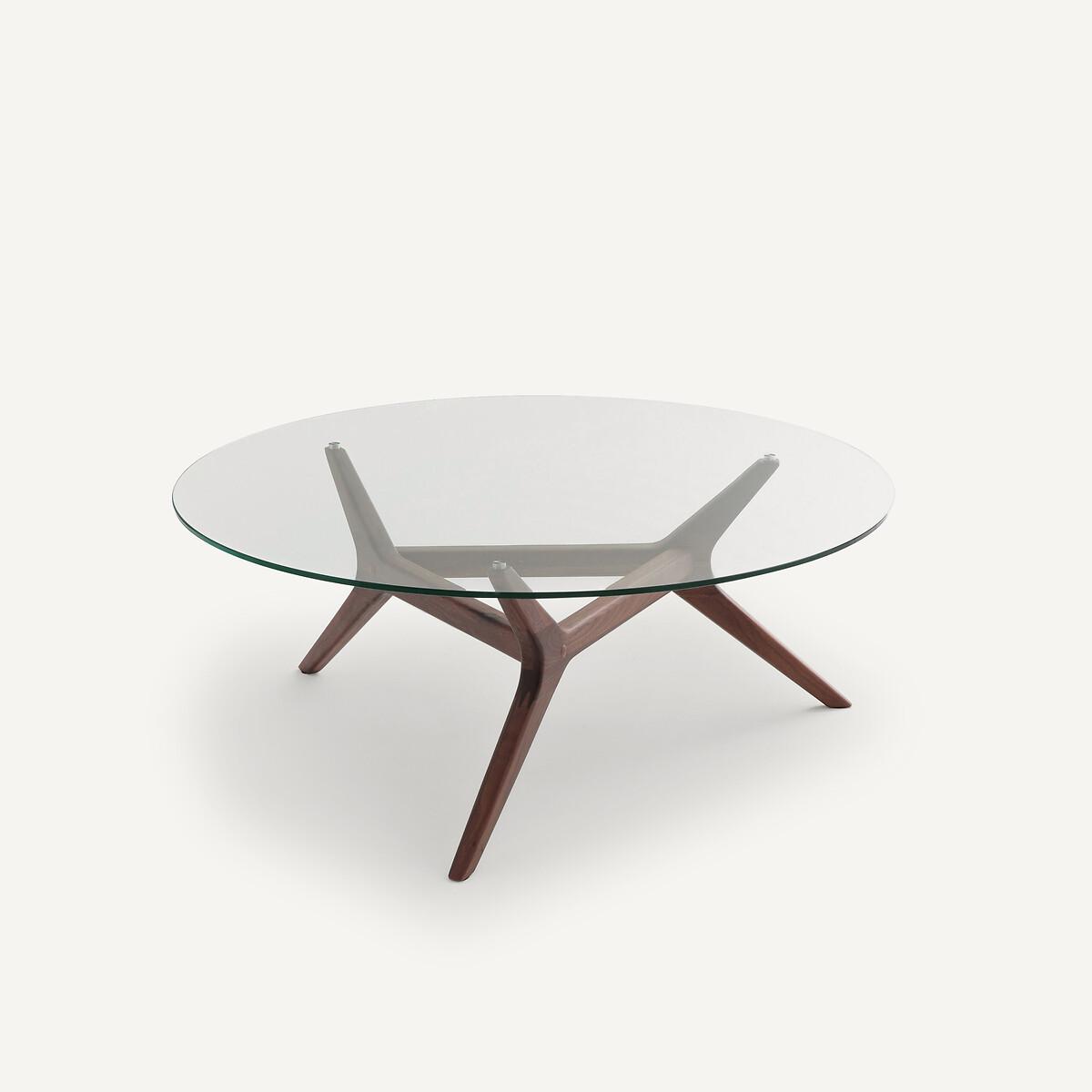 Maricielo coffee table. This elegant, refined glass-topped coffee table shows off the wonderfully appealing geometric design of the solid wood base. To be used on its own or as a pull-out by combining it with the Maricielo coffee table sold through La Redoute. Product Details • Tempered glass tabletop, thickness. 8mm. • Base in solid walnut with polyurethane finish. Dimensions • Diameter 90 x Height 35cm • WOOD FROM SUSTAINABLY MANAGED FORESTS. FSC® certified wood comes from forests that are environmentally, socially and economically well managed. Parcel Dimensions: • L96.5 x H5.5 x D95.5cm, 14 kg • L71 x H5.5 x D43cm, 5.3 kg