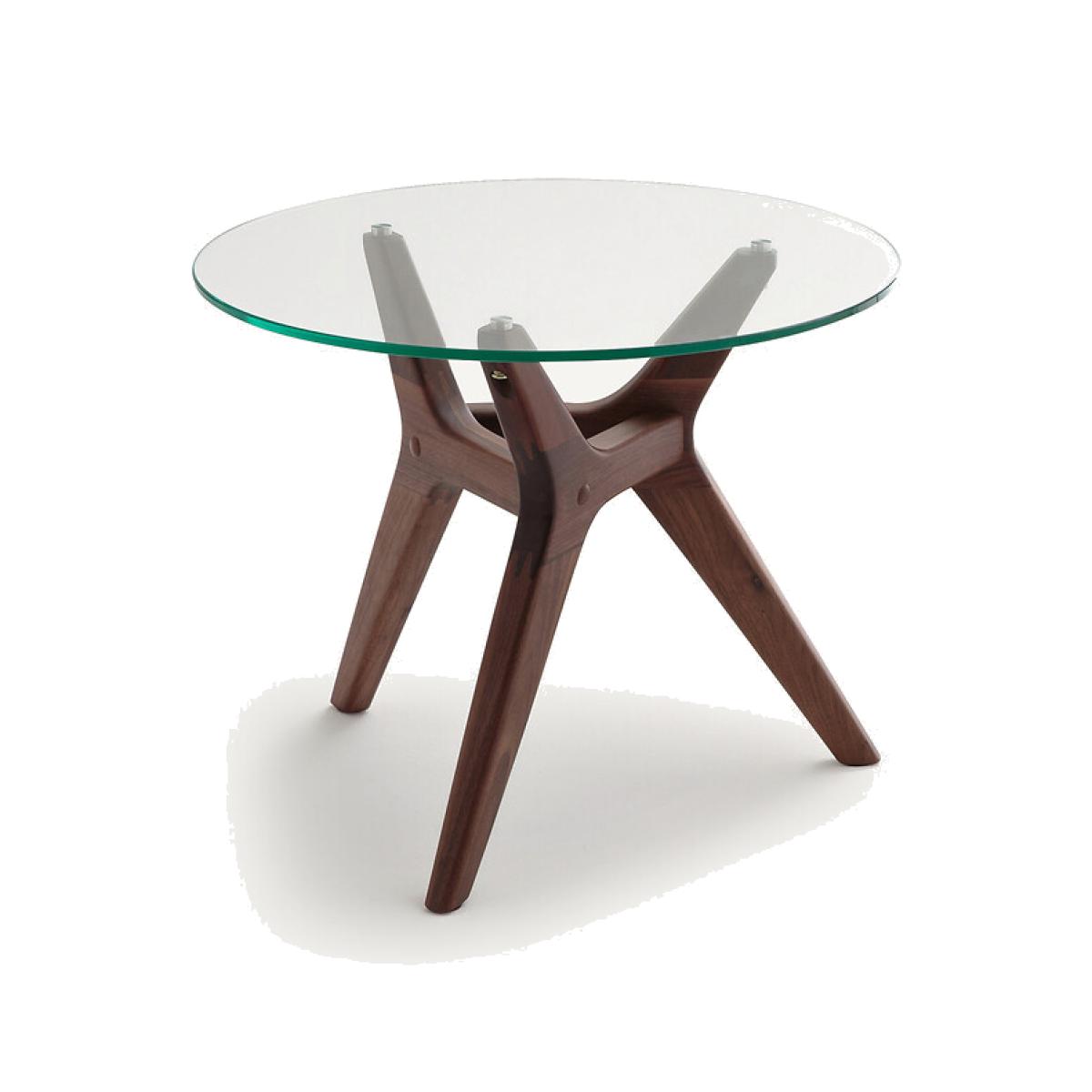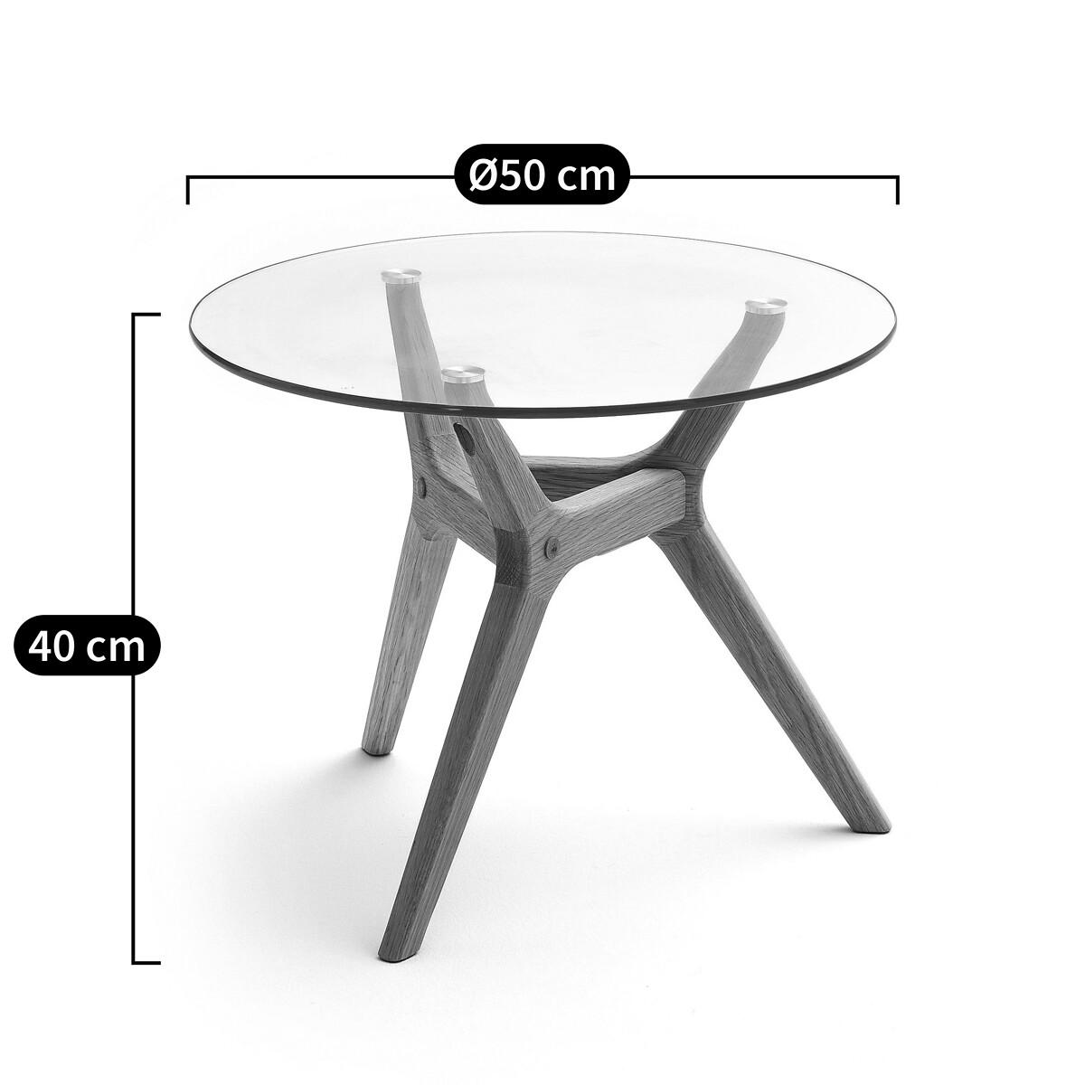 Maricielo coffee table. This elegant, refined glass-topped coffee table shows off the wonderfully appealing geometric design of the solid wood base. To be used on its own or as a pull-out by combining it with the Maricielo coffee table sold through La Redoute. Product Details • Tempered glass tabletop, thickness. 8mm. • Base in solid walnut with polyurethane finish • Dimensions:Dimensions • Diameter 50 x Height 40cm • WOOD FROM SUSTAINABLY MANAGED FORESTS. FSC® certified wood comes from forests that are environmentally, socially and economically well managed. Parcel Dimensions: • L57 x H4.5 x D56 cm, 4.4kg • L48 x H15.5 x D41 cm, 2.3kg