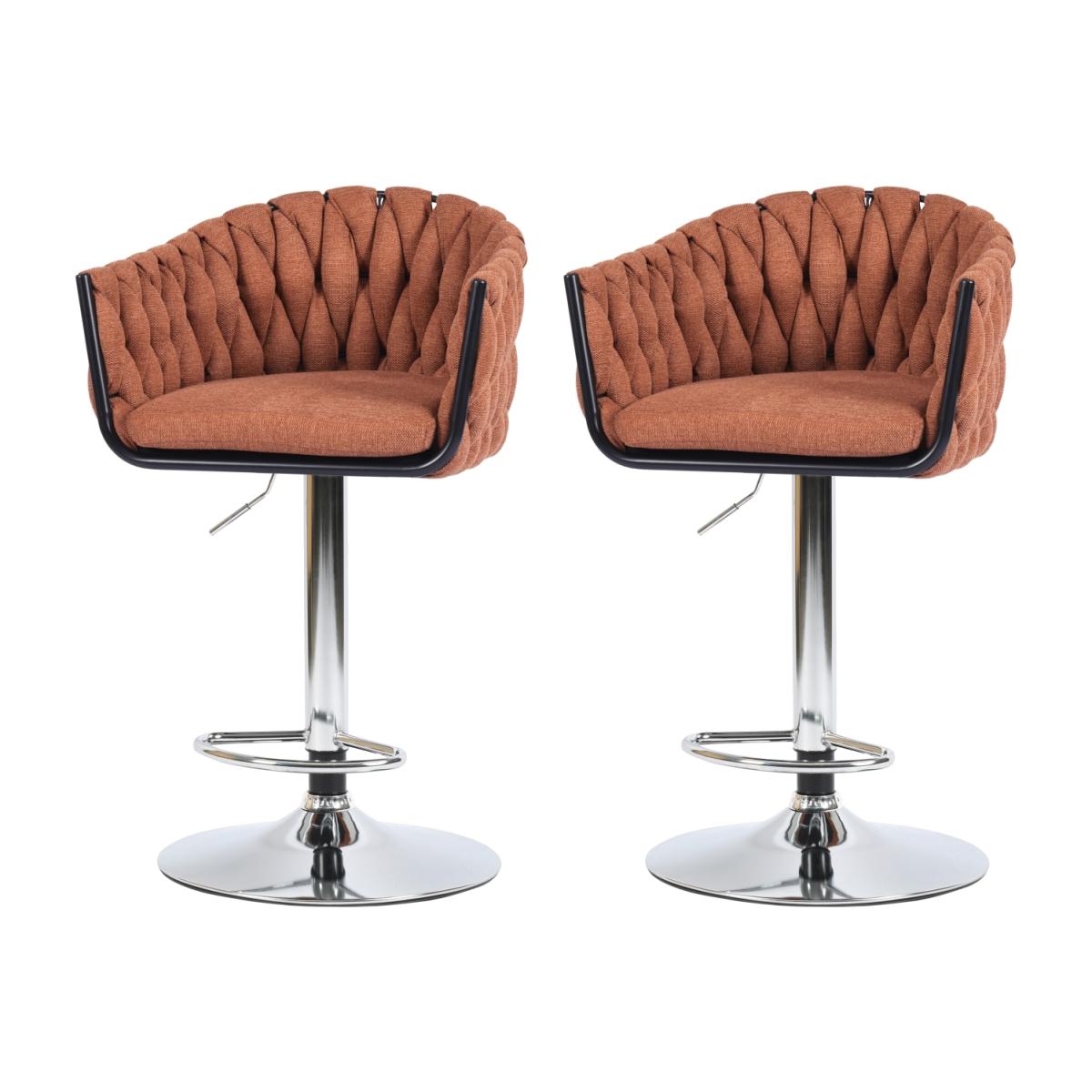With a brown fabric seat upholstery design, these 2 bar stools bring a vintage, retro, and industrial feel to your home. They will look great with your kitchen island or counter, dining room, office, or whiskey barrel. They are well designed with solid steel chrome base, easy to assemble, and height can be adjusted to fit at multiple bar heights or to ons' preferences. Perfect for your bar area or around the central island of your kitchen, its playful shape will bring modernity to your interior.