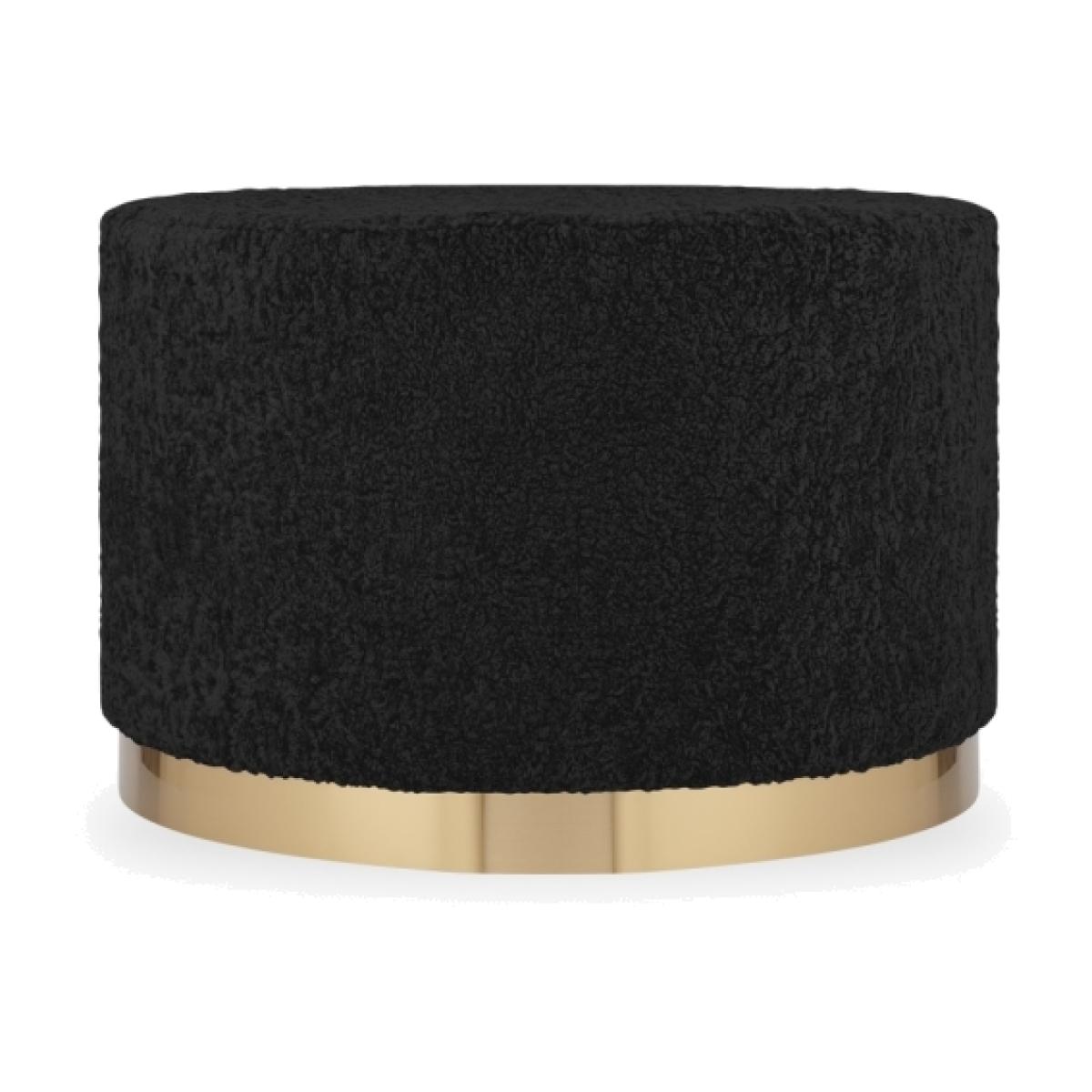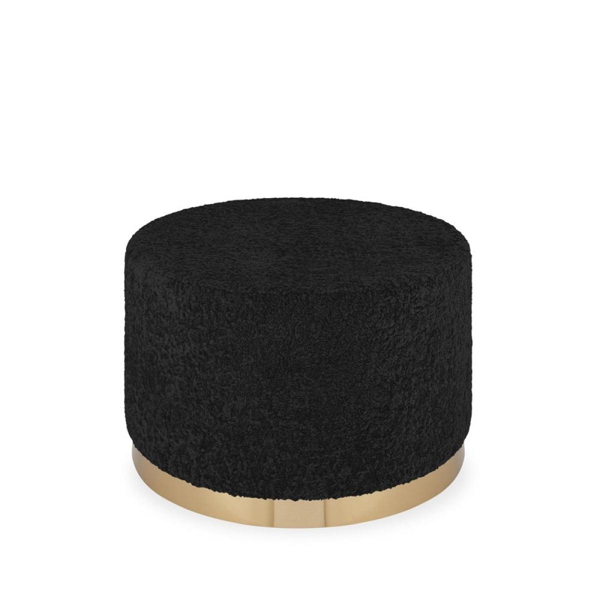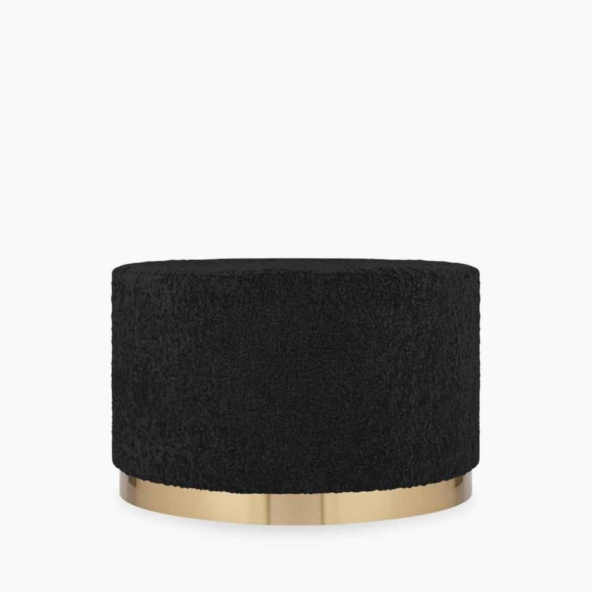 Add an elegant twist to your living space with our black boucle Marie Footstool. This low stool adds a touch of opulence with its circular gold metal band and luxurious boucle upholstery. Pop it in front of your sofa or in your bedroom to make a chic statement in your contemporary space. View The Marie Range