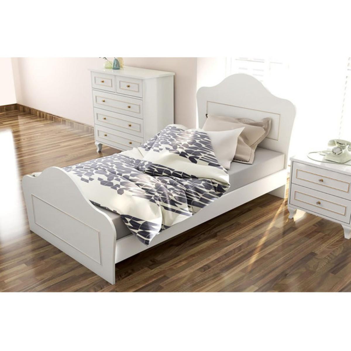 Add a luxurious feel to a contemporary bedroom with the MARIE furniture range. Inspired from the antique French furniture this practical and stylish piece is finished with soft matte white colour and gold trims. Made from quality board which ensures it sturdiness, durability and long service life. The MARIE Childrens bed is extremely tough to withstand the knocks, scuffs and bangs enduring throughout years of childhood.