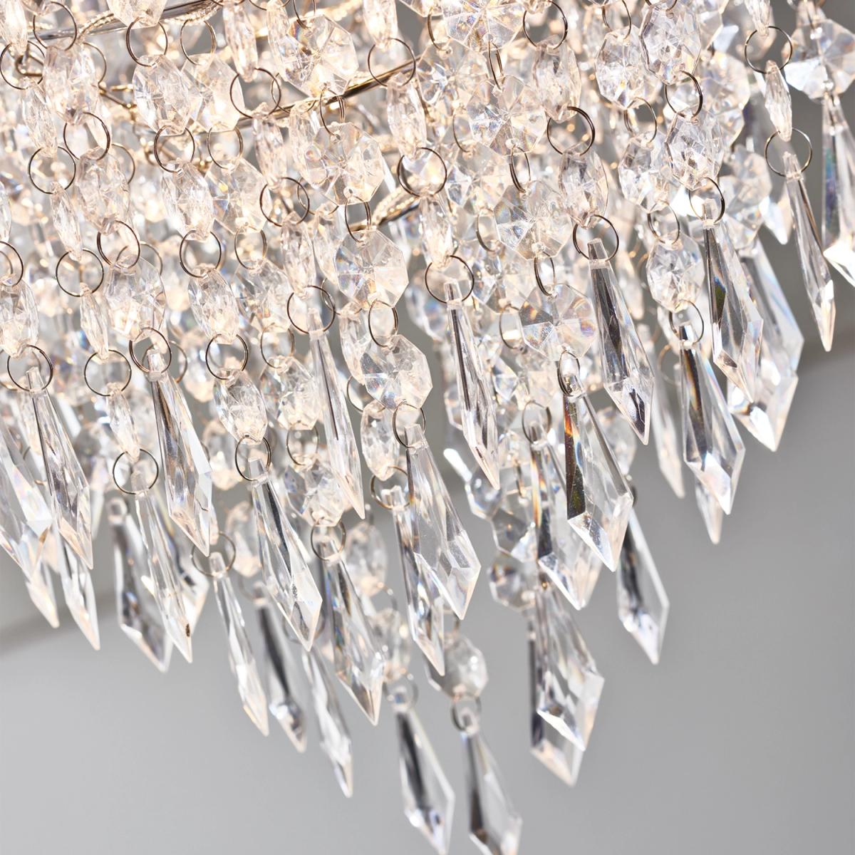 I love the Marie Jewelled Pendant in its silver finish - it adds a touch of glamour and elegance to any space. This pendant works beautifully in classic or contemporary interiors, especially in rooms with a neutral or minimal colour palette, where it can truly shine as a statement piece. For styling, consider hanging it above a dining table or in an entrance hall to create a focal point. Practical tips include pairing it with warm LED bulbs to enhance its sparkle and volume, and keeping surrounding décor simple to allow the chandelier’s intricate detailing to stand out. It’s perfect for adding a touch of luxury to both formal living rooms and more relaxed, glamourous bedrooms.