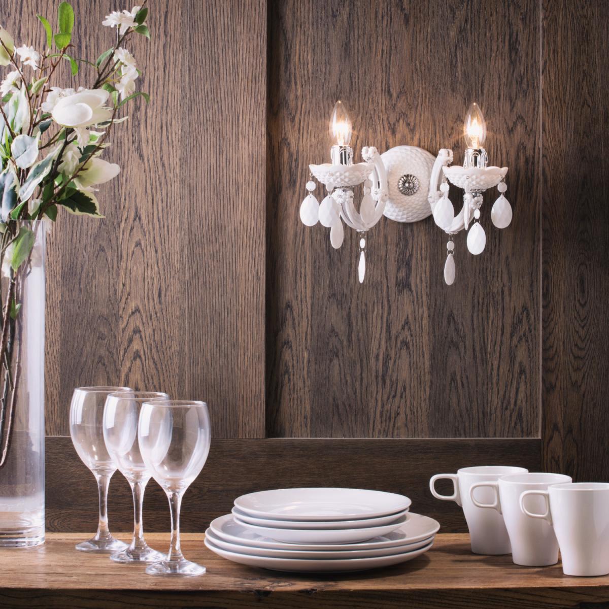 Elevate your home with the Marie Therese 2 Arm Wall Light Chandelier with FREE LED bulbs. Indulge in the timeless elegance this unique chandelier provides, and enjoy energy-efficient lighting from the LED bulbs. Experience the perfect blend of luxury and convenience, transforming any space into a sanctuary of beauty and sophistication. Whether it's a large living room or a hallway you want to illuminate the versatile design of this wall light makes it a perfect choice for any area of your home.