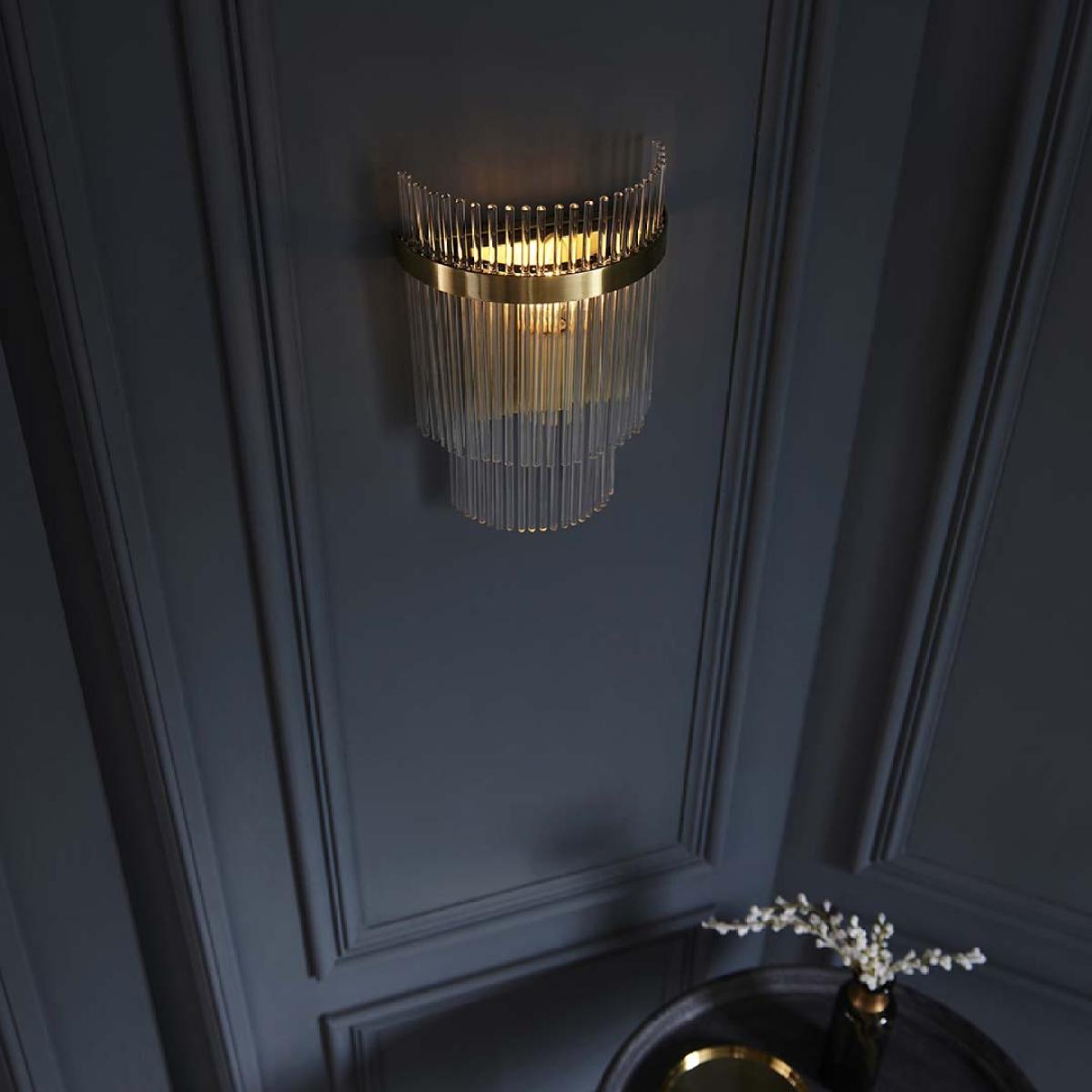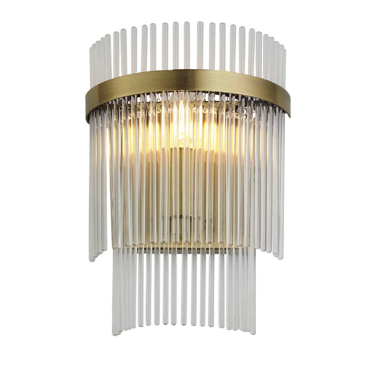 Illuminate your space with timeless elegance using the Marietta Antique Brass Wall Light. Crafted with exquisite antique brass plated metal work and adorned with decorative clear glass rods, this wall light adds a touch of vintage charm to any room. Its dimmable feature allows you to set the perfect ambiance for any occasion. Designed to be compatible with E14 LED lamps, this wall light not only enhances your space but also helps you save energy. Illuminate your space with timeless elegance using the Marietta Antique Brass Wall Light. Crafted with exquisite antique brass plated metal work and adorned with decorative clear glass rods, this wall light adds a touch of vintage charm to any room. Its dimmable feature allows you to set the perfect ambiance for any occasion. Designed to be compatible with E14 LED lamps, this wall light not only enhances your space but also helps you save energy.