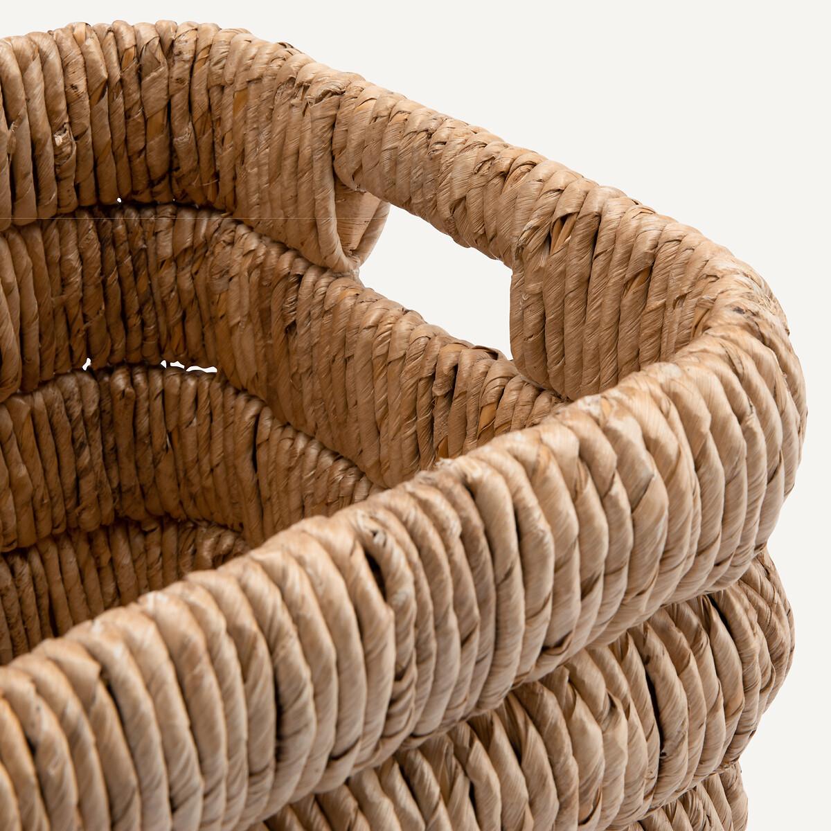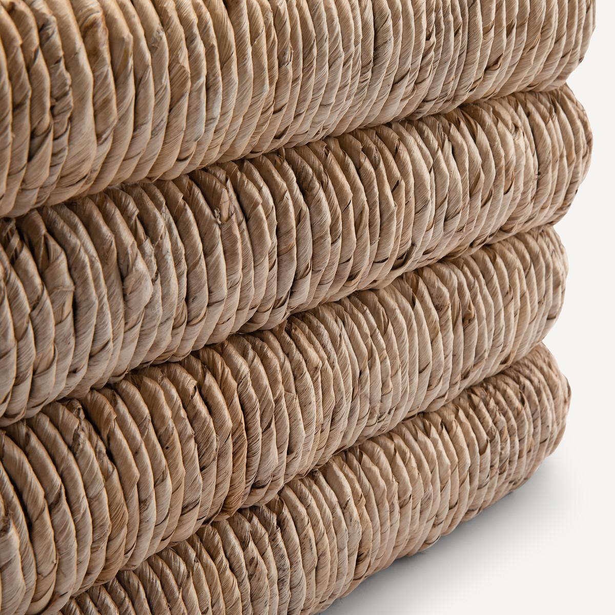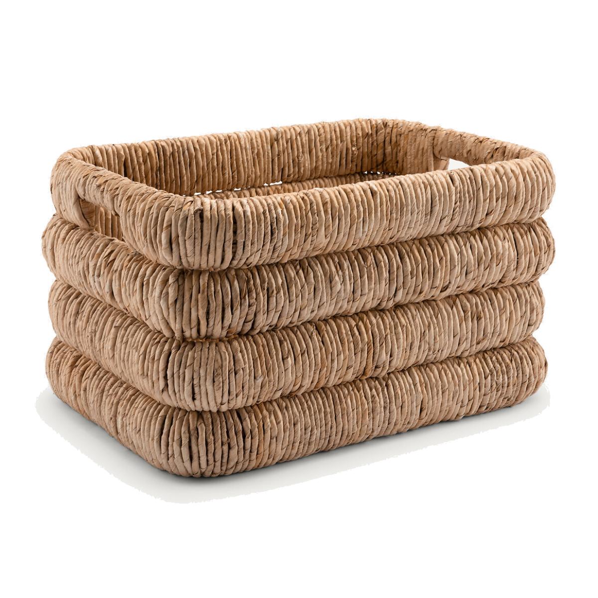 Handcrafted, generous dimensions, handles on the sides... Marilo is a low, rectangular banana tree bark basket, as decorative as it is functional. This natural-looking fibre is braided into round, rounded sausages with a quilted effect.. Each piece is unique. Product Details • Braided banana bark • Steel frame • Handles on the side • Handcrafted braiding, each piece is unique. Quality Info • The irregularities of the braiding are due to artisanal production. They contribute to the beauty of each piece and make it unique. Dimensions • Width: 52cm • Height: 29cm • Depth: 37cmDelivery:. Sold pre-assembled. Dimensions and weight of parcel • 1 parcel • L53 x H39 x D32cm. 5kg