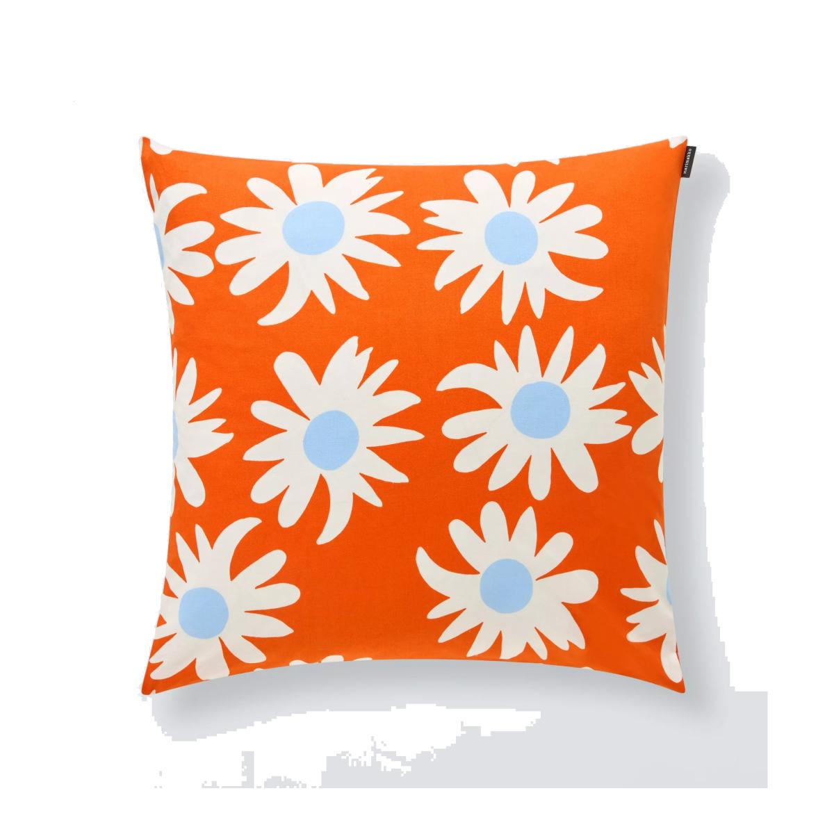 This cushion, famously called the marimekko daisy, adds a bold splash of colour and pattern that really lifts a neutral space. I love it because it works equally well in contemporary or eclectic interiors, bringing a playful yet stylish vibe. For styling, I’d suggest pairing it with clean-lined sofas in soft grey or white to let the cushion stand out without overwhelming the room. It also looks great mixed with other textured cushions or in a layered arrangement on a bed or armchair. Practical tip: since it’s vibrant and busy, keep surrounding furnishings simple to let the daisy print really pop.