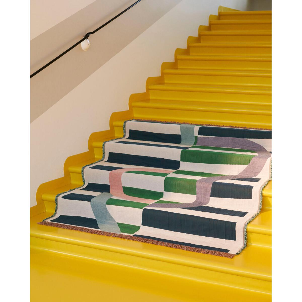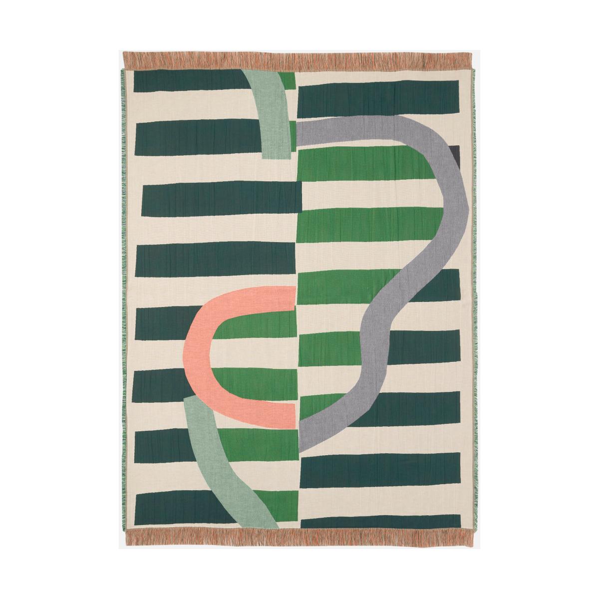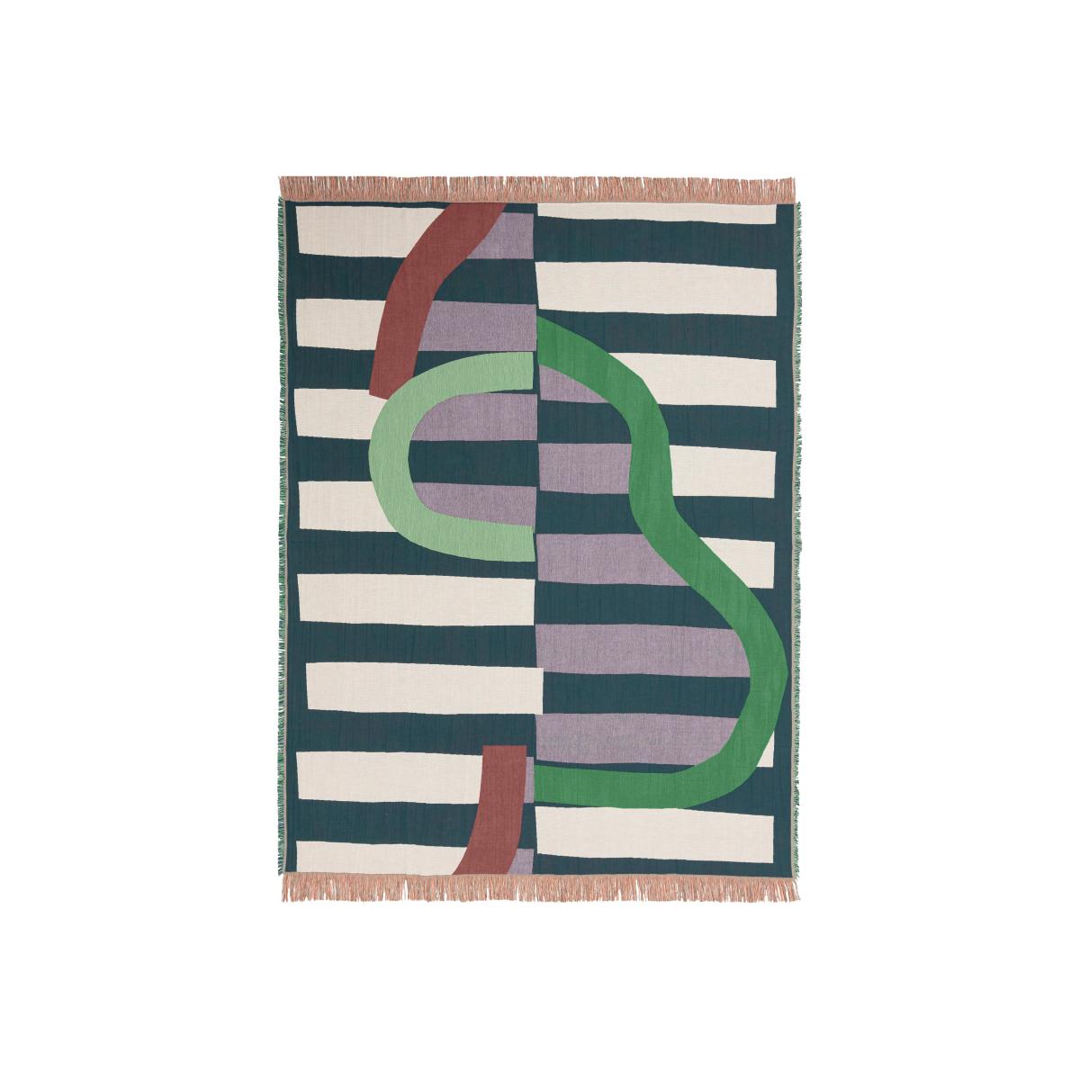 I love this throw for its bold, modern print and versatile colour palette. It works particularly well in contemporary or Scandinavian interiors where clean lines and playful patterns are key. The mix of blue, coral, and green adds a lively touch without overwhelming the space. For styling, consider draping it over a neutral sofa or layered on a bed for colour and texture. It also pairs well with minimalist furniture, adding warmth and visual interest. Practical tips include folding it neatly at the foot of the bed for a chic look or tossing it over a lounge chair to create an inviting, lived-in feel. The jacquard weave ensures it's durable enough for everyday use, making it both a stylish and functional addition.