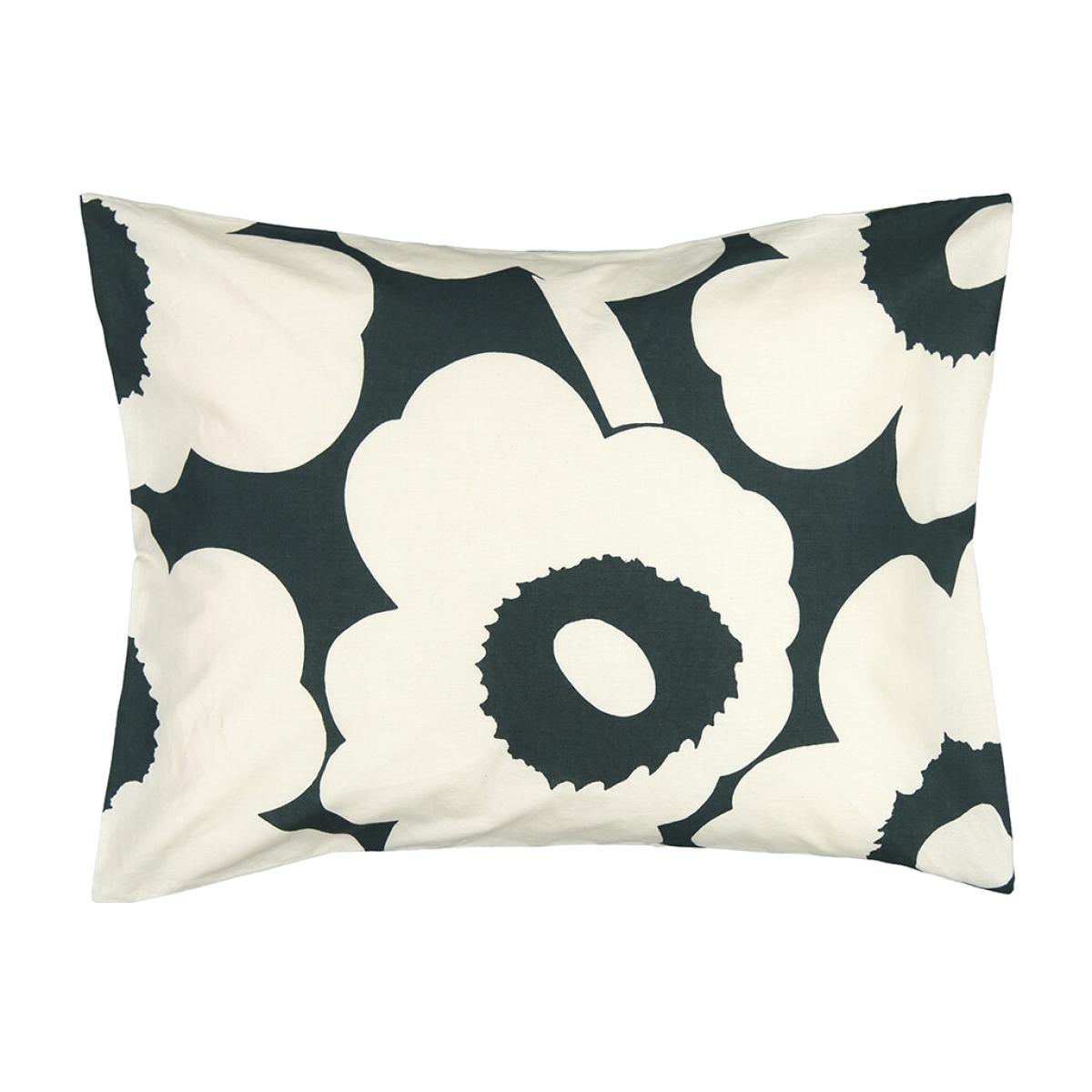 Drift off into a blissful slumber with this Unikko pillowcase from Marimekko. Made from soft cotton to ensure a comfortable night's sleep, it's adorned with Marimekko's much-loved Unikko print and pairs perfectly with the matching duvet cover available separately. Key features: * Material: 100% cotton * Dimensions: 50x60cm * 300 thread count * Adorned with the Unikko pattern * In dark green and cream shades * Designed by Maija & Kristina Isola * Machine washable at 60°C
