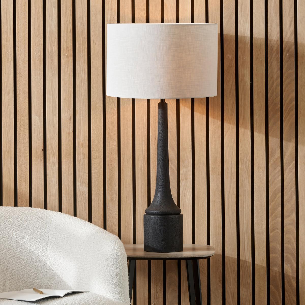 Marin Black Wood Tall Neck Table Lamp with 40cm Linen Drum Shade Black