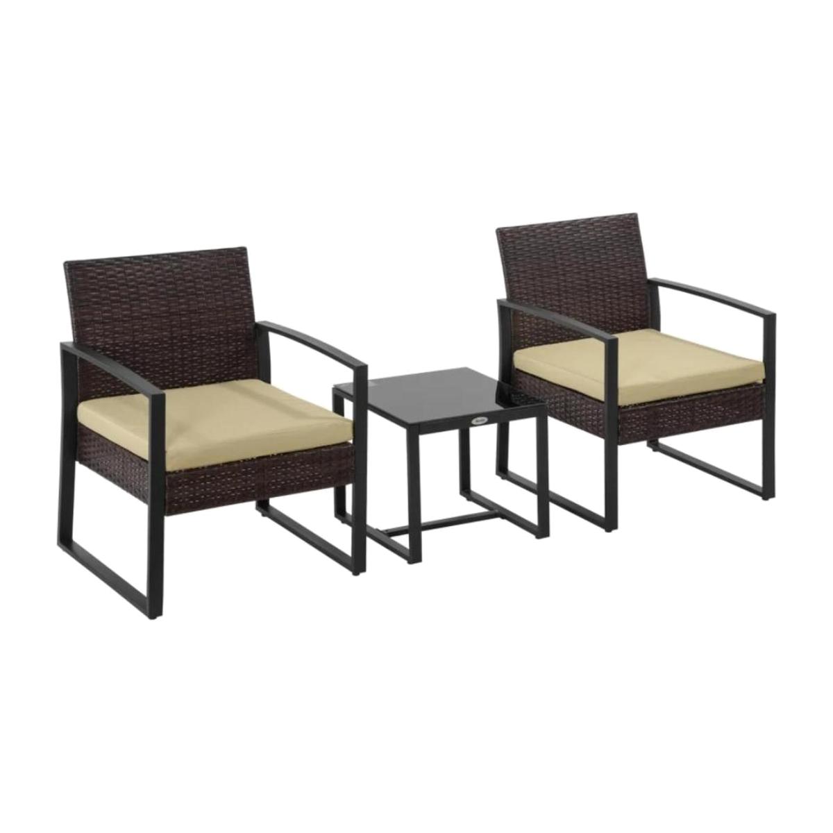 This three piece outdoor dining set from Chilli Seating is the perfect blend of style meets functionality. Made from high quality, hand woven PE wicker rattan with a solid metal frame underneath, this chair and table set is weather resistant and highly durable. With a padded cushion and high rise back and arms, each chair is extremely comfortable to provide you hours of relaxation time. Featuring a thick glass top, the table is easy to clean and maintain and will not stain, keeping it looking fresh for years to come. Its ideal for catching up with a friend over coffee in the summer heat.