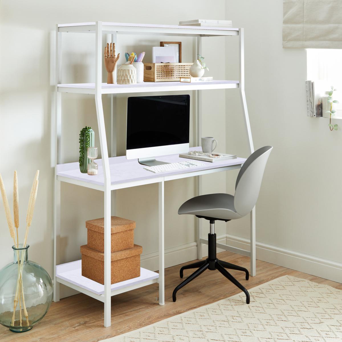 The Marina marble-effect ladder desk is a versatile piece that works well in contemporary or minimalist interiors, thanks to its sleek white frame and elegant marble-inspired surface. I love it for its practical design, providing plenty of shelf space for organisation and styling accessories. It’s ideal for creating a clean, clutter-free workspace in a home office or even a study nook. For styling, add a few personalised touches like potted plants, modern desk accessories, or a statement lamp to bring the space to life. Keep items on the shelves organised with baskets or boxes to maintain a tidy appearance, while the marble effect adds a touch of sophistication without feeling overly formal.