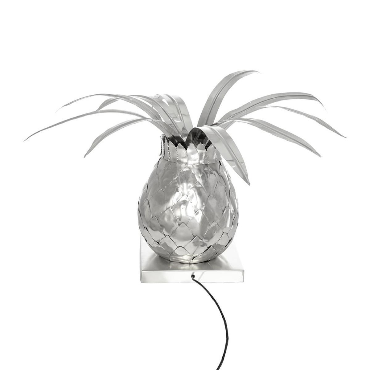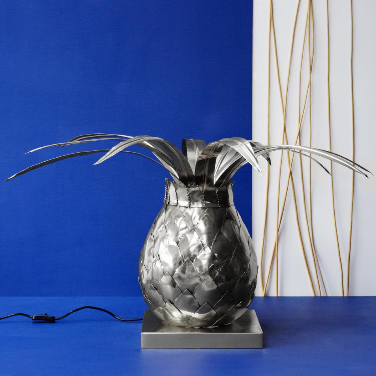 Take the tropics home with you with this pineapple lamp from Marinette Saint Tropez. Made from stainless steel and brass, this lamp is in a striking pineapple shape with flared leaves and a subtly textured body. Perched on a matching metal plinth, it is available in a shiny brass or nickel finish and offers a wonderfully laidback but no less stylish feel wherever placed. Key features: * Table lamp * Material: stainless steel, brass * Dimensions: H56xØ94cm * Bulb required: 1x E27 (not included) * Ornate pineapple shape with a nickel finish * With large flared leaves * On a matching metal plinth