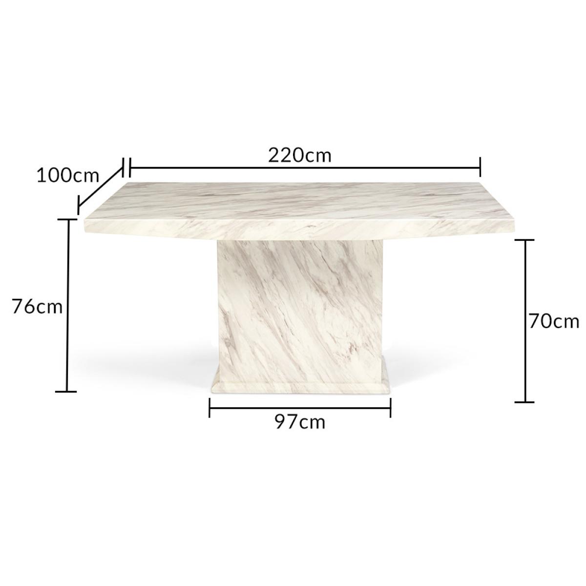 I’m a fan of the Marino table for its convincing marble finish and generous 220 cm length - it brings the look of real stone without the weight or cost. Its crisp white base and subtle grey veining sit neatly in minimalist, Scandi or contemporary schemes and won’t clash with bolder accent colours or textures. For styling, keep things simple: pair with slim, upholstered chairs in soft neutrals and hang a low-profile pendant light above. A single glass vase of foliage or a neat row of candles makes an understated centrepiece without hiding the table’s beautiful surface.