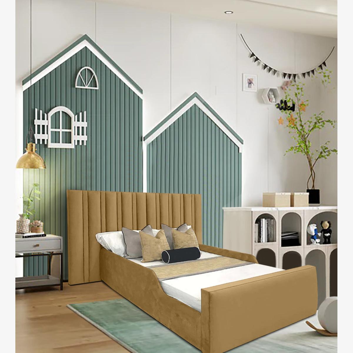 Mario Kids Bed Gaslift Ottoman Plush Velvet with Safety Siderails - Beige / Single