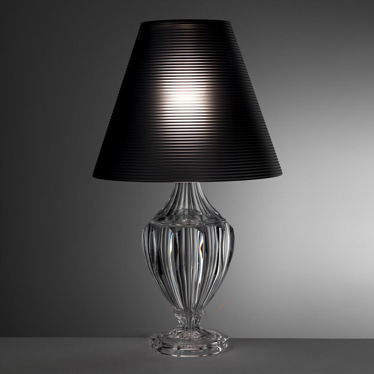 Illuminate your home with the elegance of this Joshua lamp from Mario Luca Giusti. With a clear acrylic base, this lamp has an ornate look inspired by classic crystal designs. Topped with a narrow striped shade in a selection of colours, it’s a decorative piece for any room without the usual fragility.