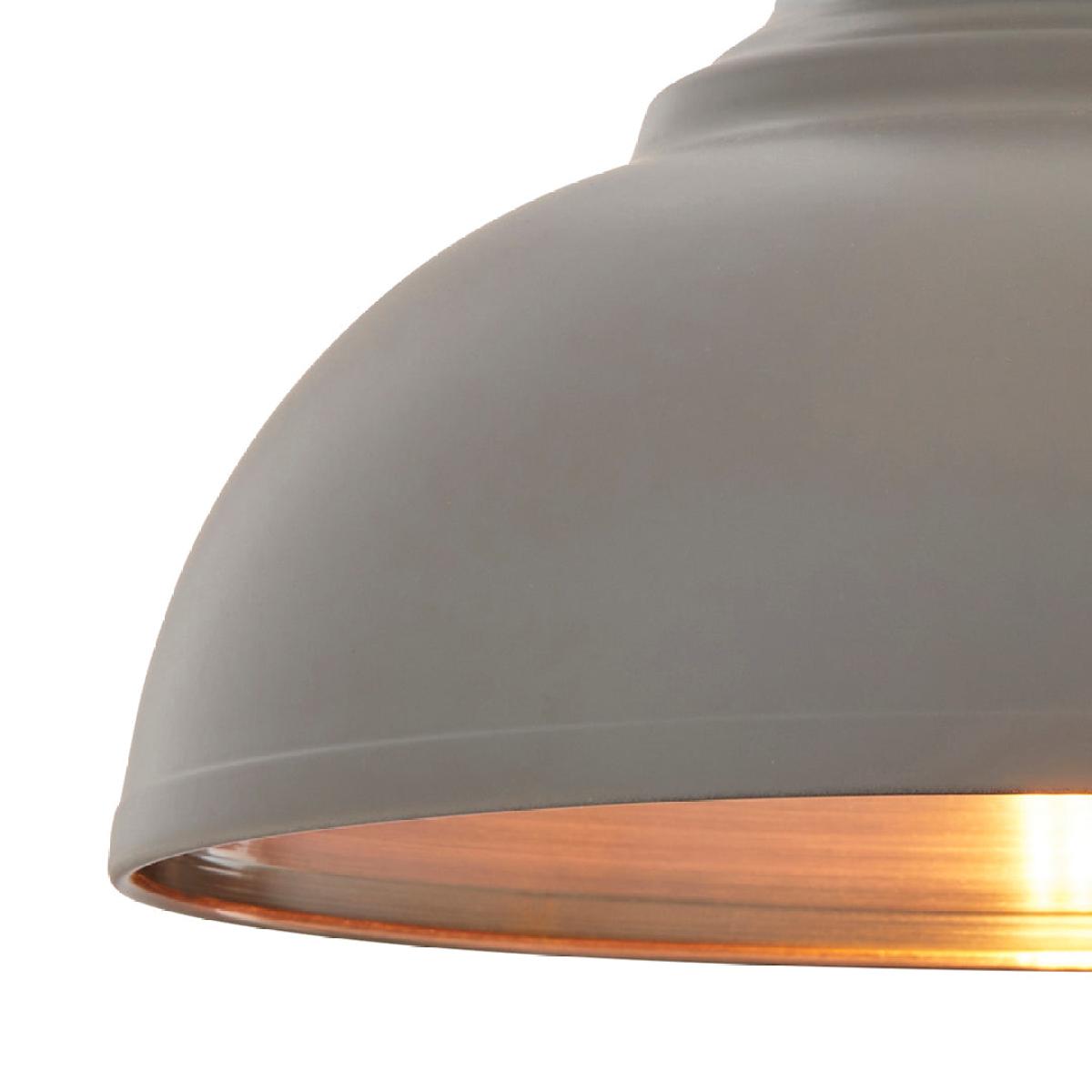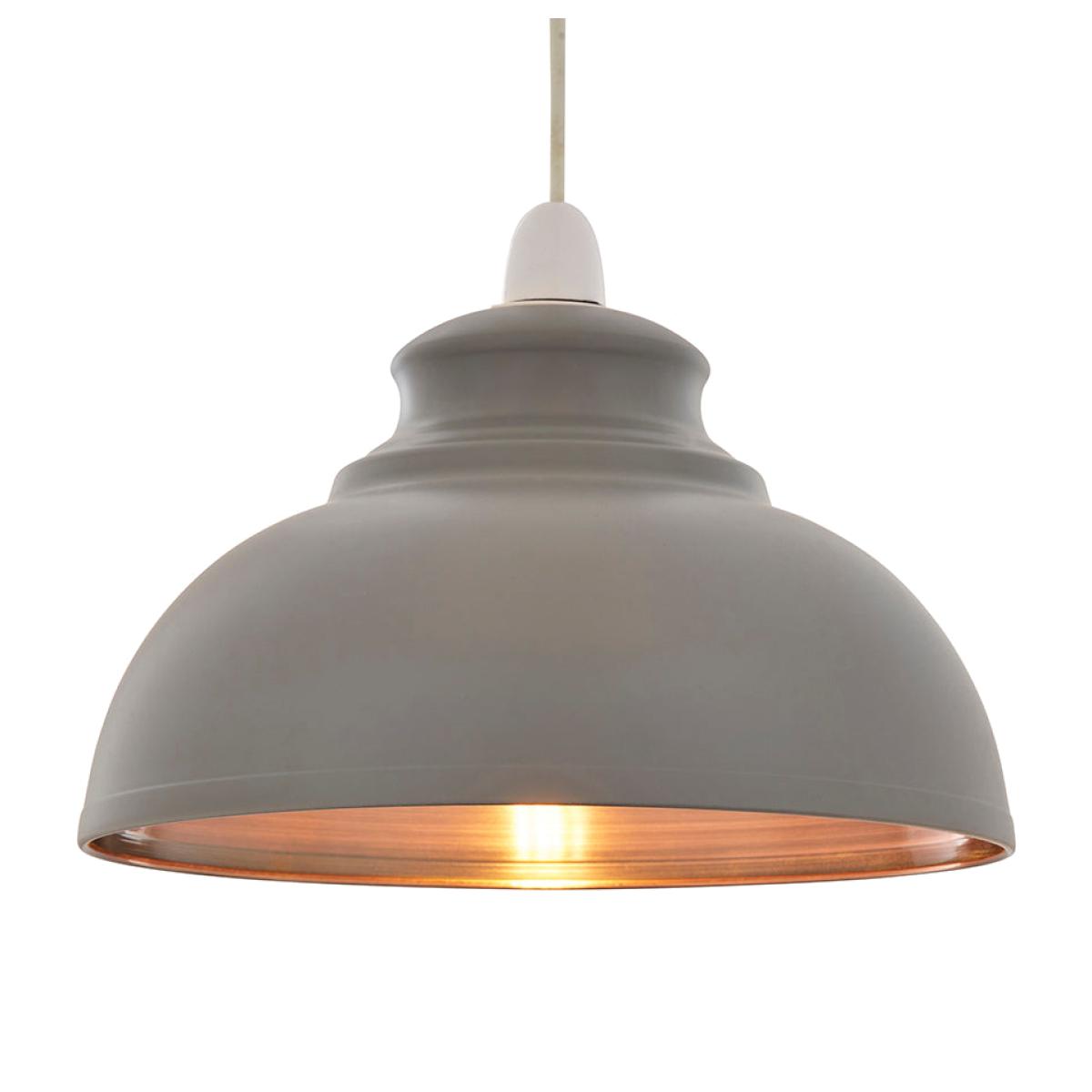 The Maris Matte Grey Easy-Fit Pendant is a sleek and modern design exclusive to Pagazzi Lighting. Crafted from spun metal, it features a smooth matte grey exterior paired with a brushed antique brass inner finish for a striking contrast. The dome shape and warm metallic interior create a beautifully diffused glow when lit, adding a touch of industrial elegance to any room. Easy to install with no electrician required, the Maris pendant includes an E27 aperture with reducer, ensuring compatibility with most standard ceiling fittings. Perfect for contemporary living spaces, dining areas, or bedrooms, this pendant combines bold style with effortless functionality.
