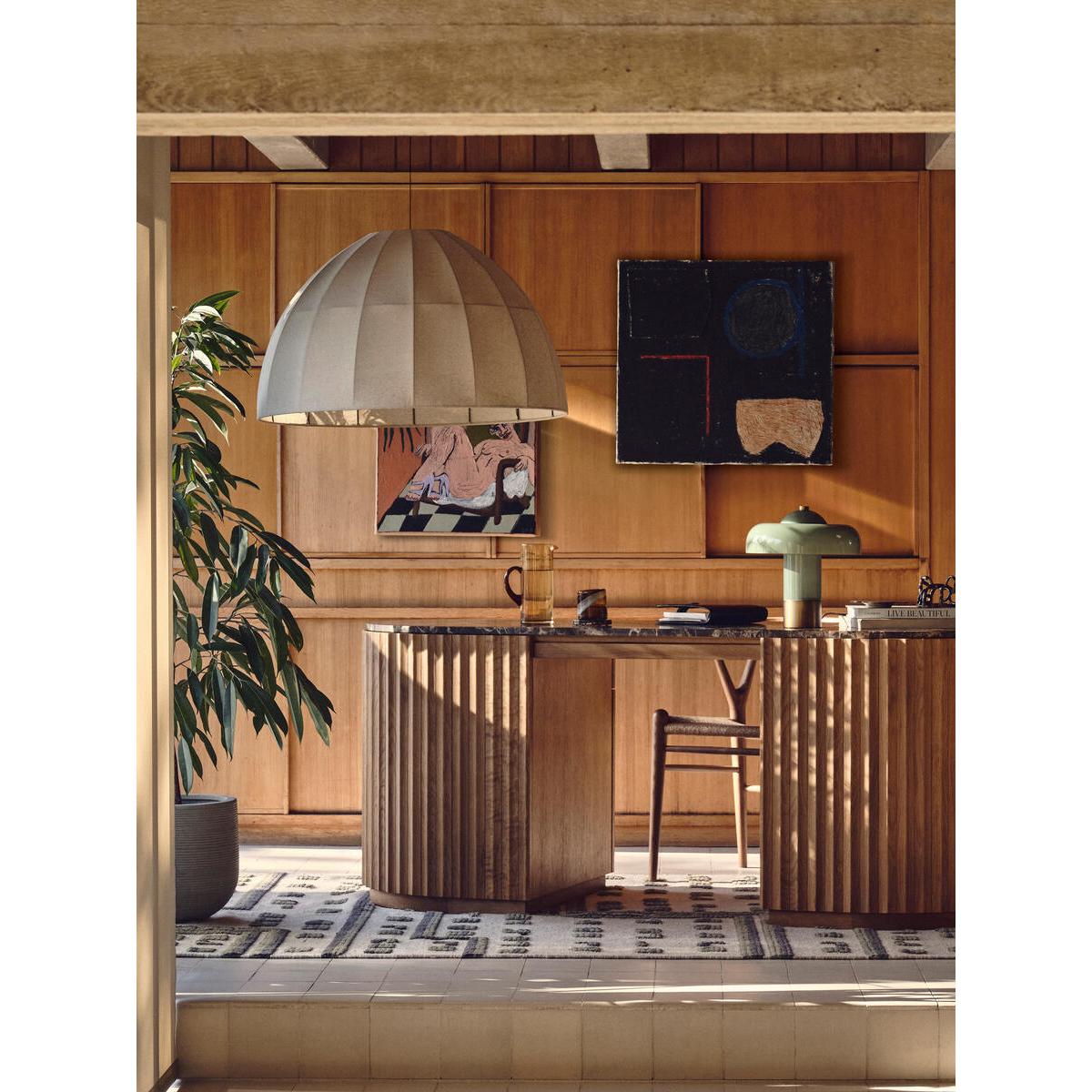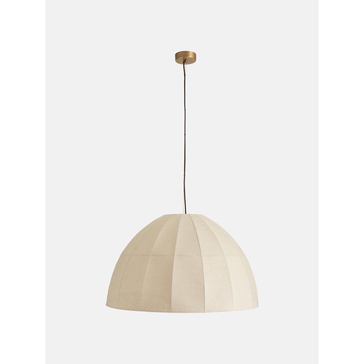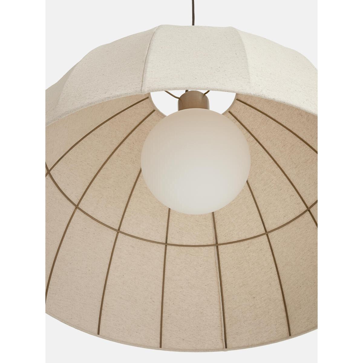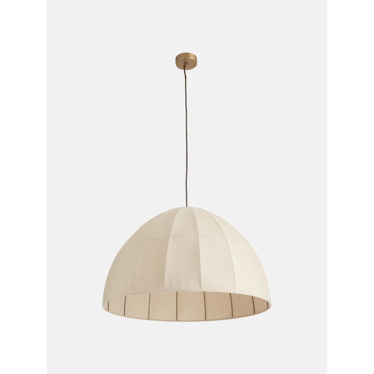 The unique domed structure of our Maris pendant is inspired by the architectural design of our Farm Huts at Soho Farmhouse. Featuring an antiqued brass frame and a pulled linen shade to bring warm and ambient lighting into any room, this ceiling light also has a milky-coloured glass diffuser around the bulb to soften the light level. Domed ceiling light pendant Pulled linen shade Glass diffuser around the base Inspired by Soho Farmhouse