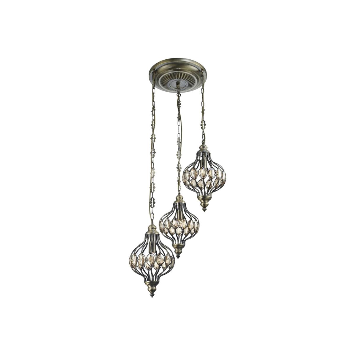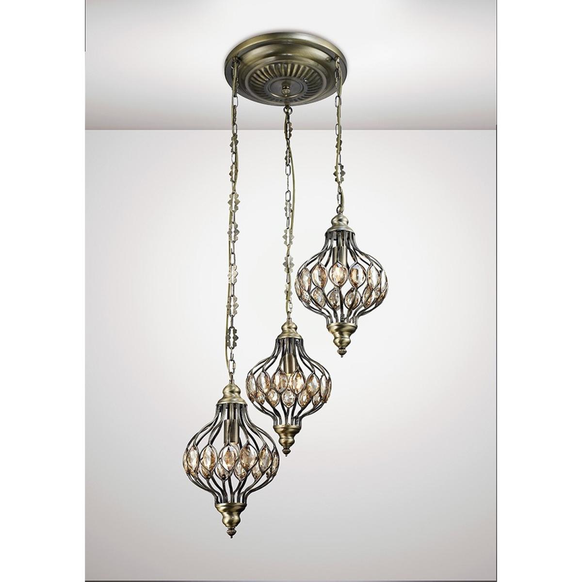 Marisa Triple Ceiling Pendant Round 3 Light E27 Antique Brass, Amber Crystal - Antique Brass