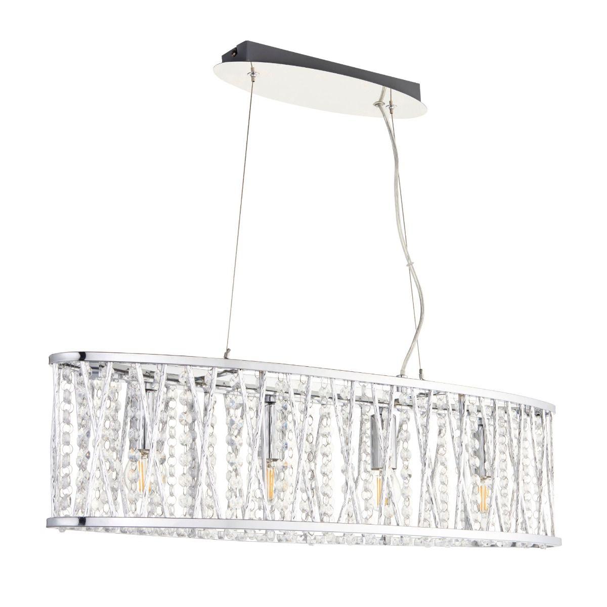 Goregous four light ceiling pendant. A stylish ceiling light, the Marissa Bar Pendant Light is guaranteed to make a bold statement. Each crystral reflexs the light creating a beautiful glow throughout the room. The Marissa features a chrome effect cage housing 4 SES bulbs. Need Bulbs? Choose from either our warm white or cool white E14 bulbs Goregous four light ceiling pendant. A stylish ceiling light, the Marissa Bar Pendant Light is guaranteed to make a bold statement. Each crystral reflexs the light creating a beautiful glow throughout the room. The Marissa features a chrome effect cage housing 4 SES bulbs. Need Bulbs? Choose from either our warm white or cool white E14 bulbs