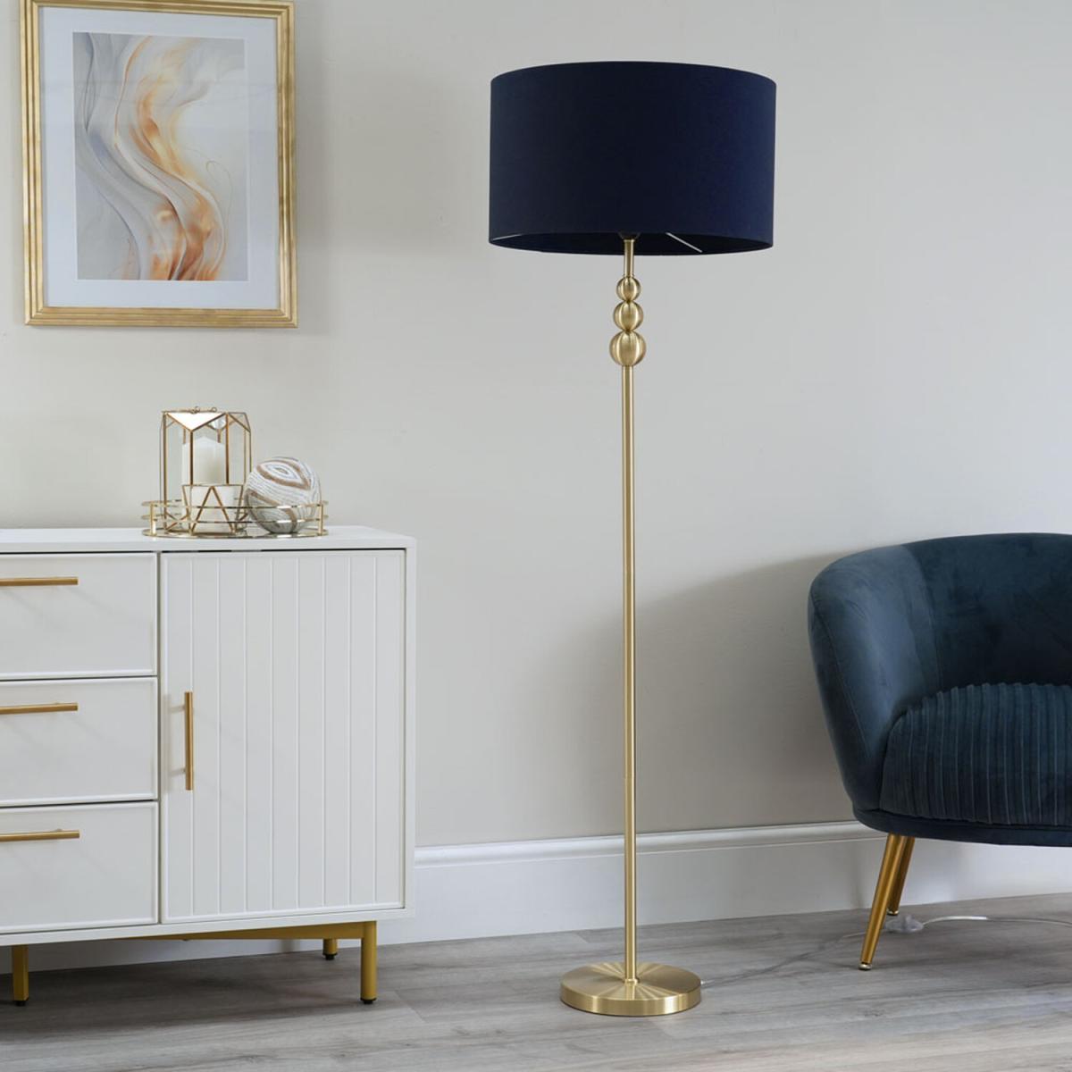 Marissa Brushed Gold Floor Lamp with Drum Shade - Navy / Without Bulb