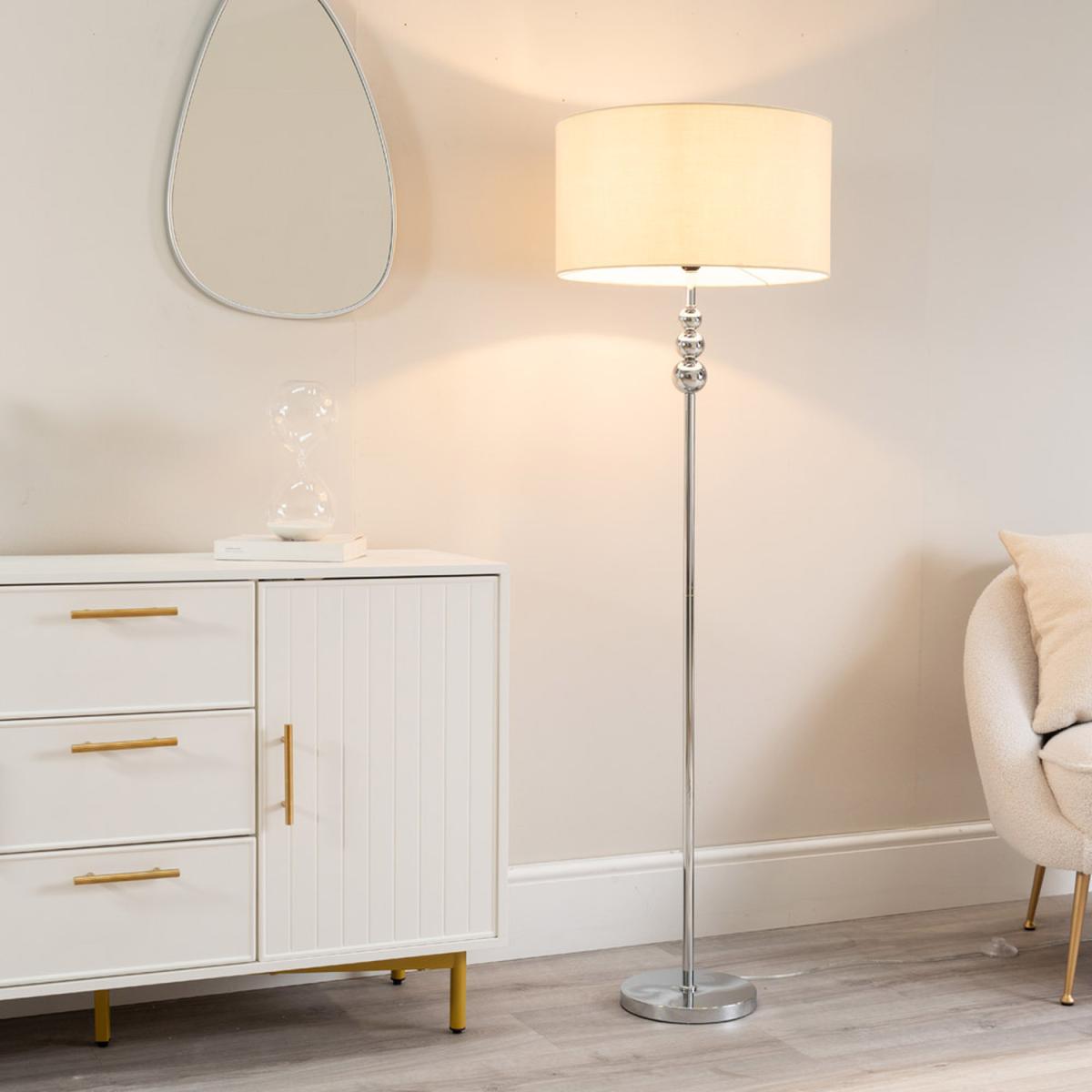 Marissa Chrome Floor Lamp with Fabric Drum Shade and Bulb - Natural