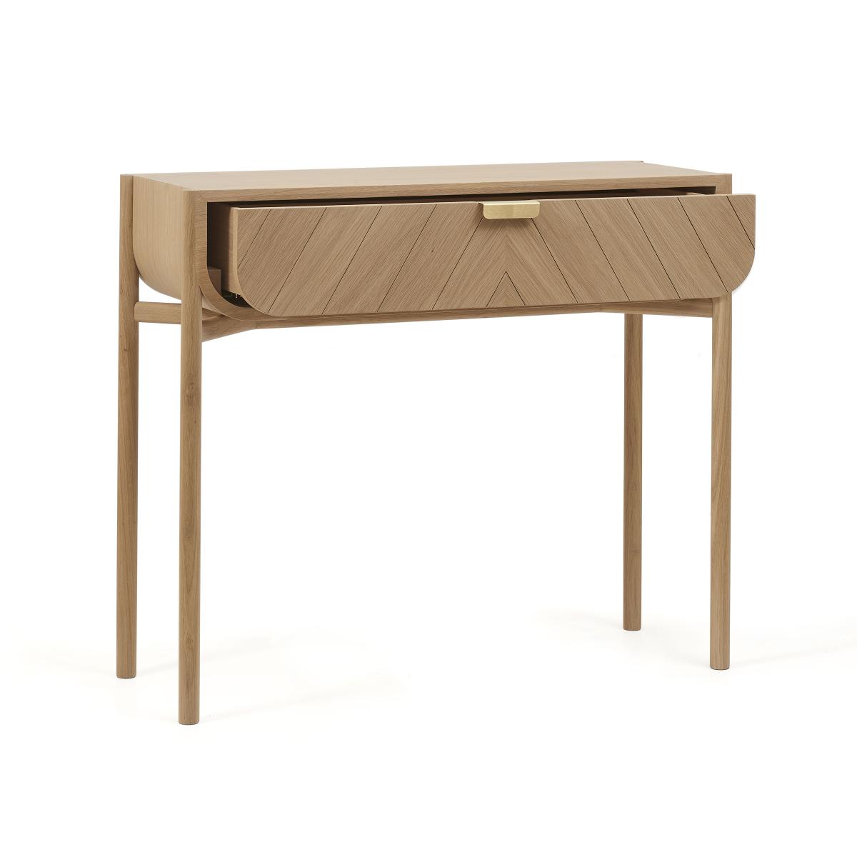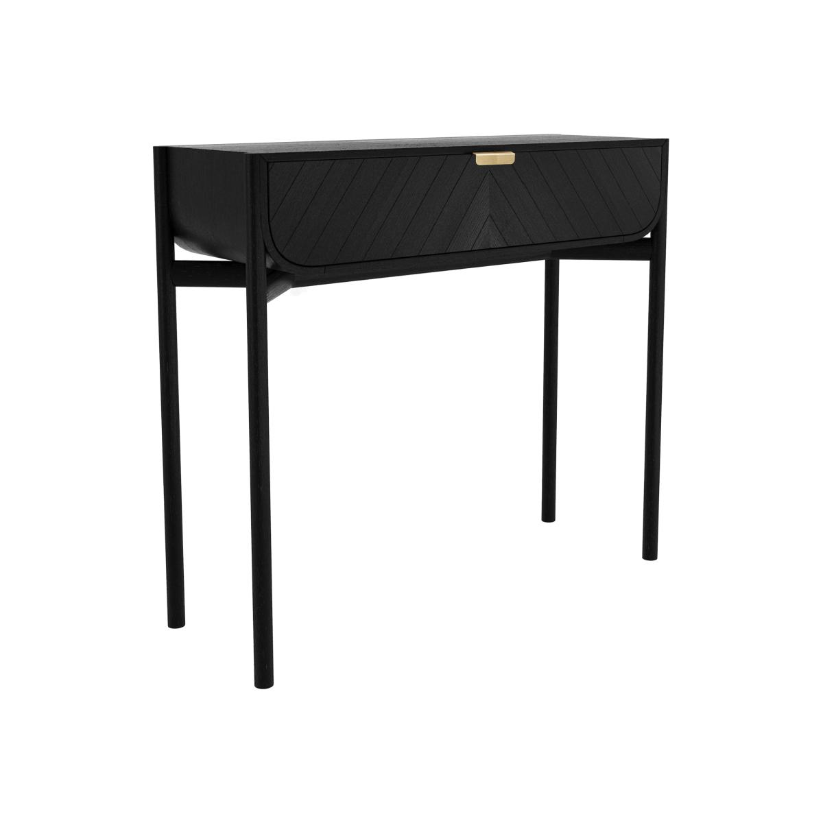 I love this Marius console for its sleek, minimalist design and versatile black finish, making it a chic addition to a range of interiors. It works particularly well in modern, urban spaces or areas where you want to add a touch of understated elegance, such as an entryway, hallway, or even behind a sofa. Practical styling tips include layering with a decorative tray, a chic lamp, or incorporating a few small plants to soften the look. Its compact size and drawer also make it great for storing everyday essentials without cluttering your space, while adding a stylish focal point. Overall, this piece balances functionality with contemporary style, making it both a practical and aesthetic choice.