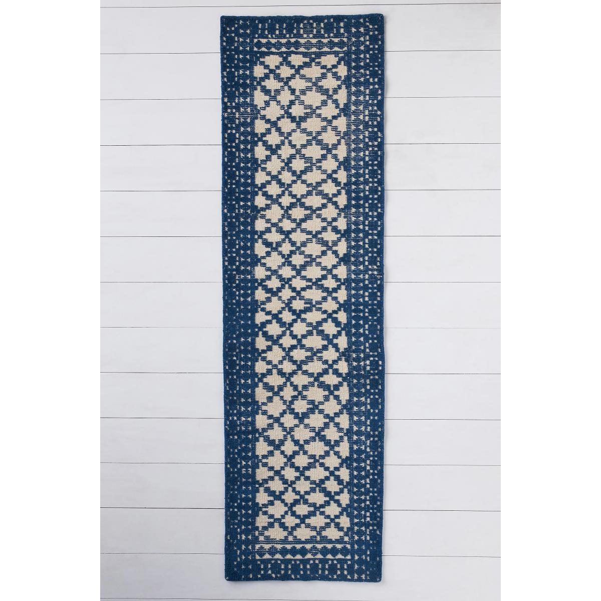 Designed by Mark D. Sikes for Anthropologie, this coastal-inspired, hand-knotted rug showcases a sought-after print in signature hues. * Exclusively for Anthropologie * By Mark D. Sikes * Hand-knotted 47% Wool, 43% Jute, 10% Cotton; Cotton backing * Weft yarn is wrapped then knotted around each warp thread * Each yarn is hand-cut and hand-tamped for tightly constructed knots * Suitable for low-traffic areas * Rug pad recommended to prevent slippage and protect your floor * Rotate periodically for even wear * Shedding is a normal process that occurs with natural fiber rugs; it should subside after 6-8 weeks with regular vacuuming * To avoid damage, vacuum with the beater bar off, using a high-pile setting * Blot spills immediately with a clean, absorbent white cloth * Professionally clean for best results * Imported