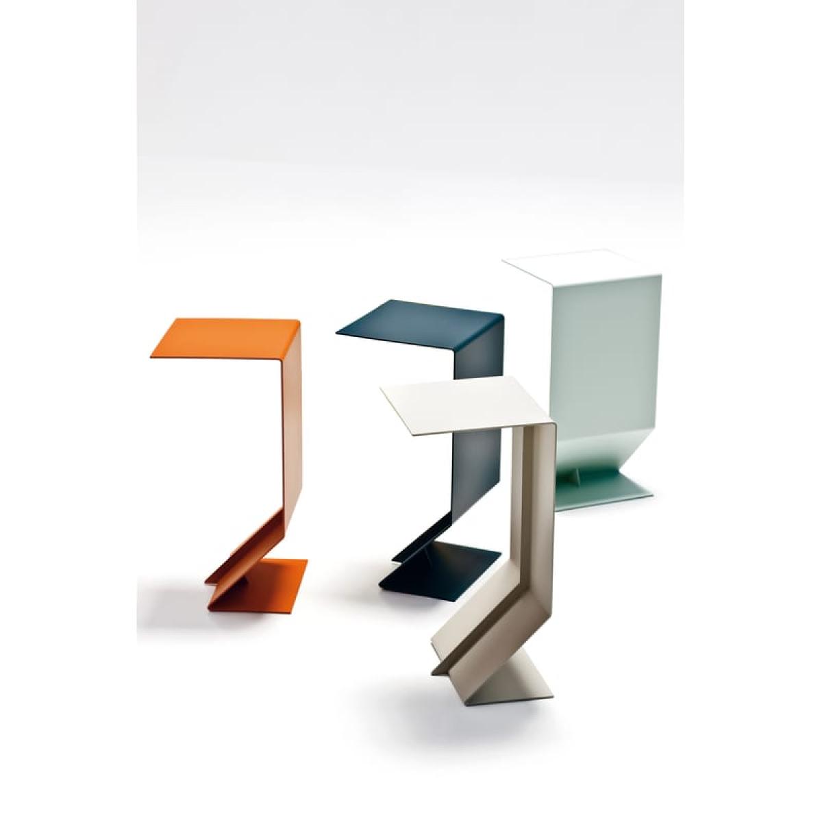 Created by designer Marc Thorpe, the Mark table collection lends itself to many interpretations and uses. Side table or bedside table, sofa end or laptop stand: the choice is yours! Mark is made from a single folded sheet metal. Its simple geometry gives it a special aura. A table open to reflection, to transformation: an opportunity to construct a 'different' space. Just as it's possible to create words from letters, Mark tables can be assembled according to one's inspiration, for a totally personalized visual appearance.