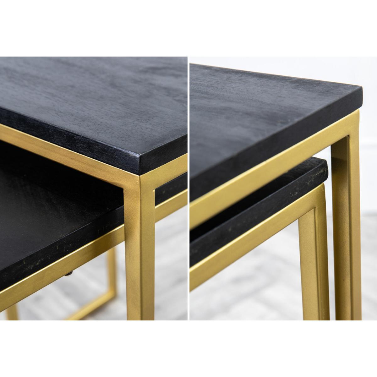 Bring a touch of retro chic to your space with the Mark range of Nesting Tables. Strong lines and sharp contrasts define this piece, with sturdy Stainless Steel cubist legs and a classic Mango Wood top with a Black finish, combining style with versatility. Sure to leave a mark on anybody that sees them!