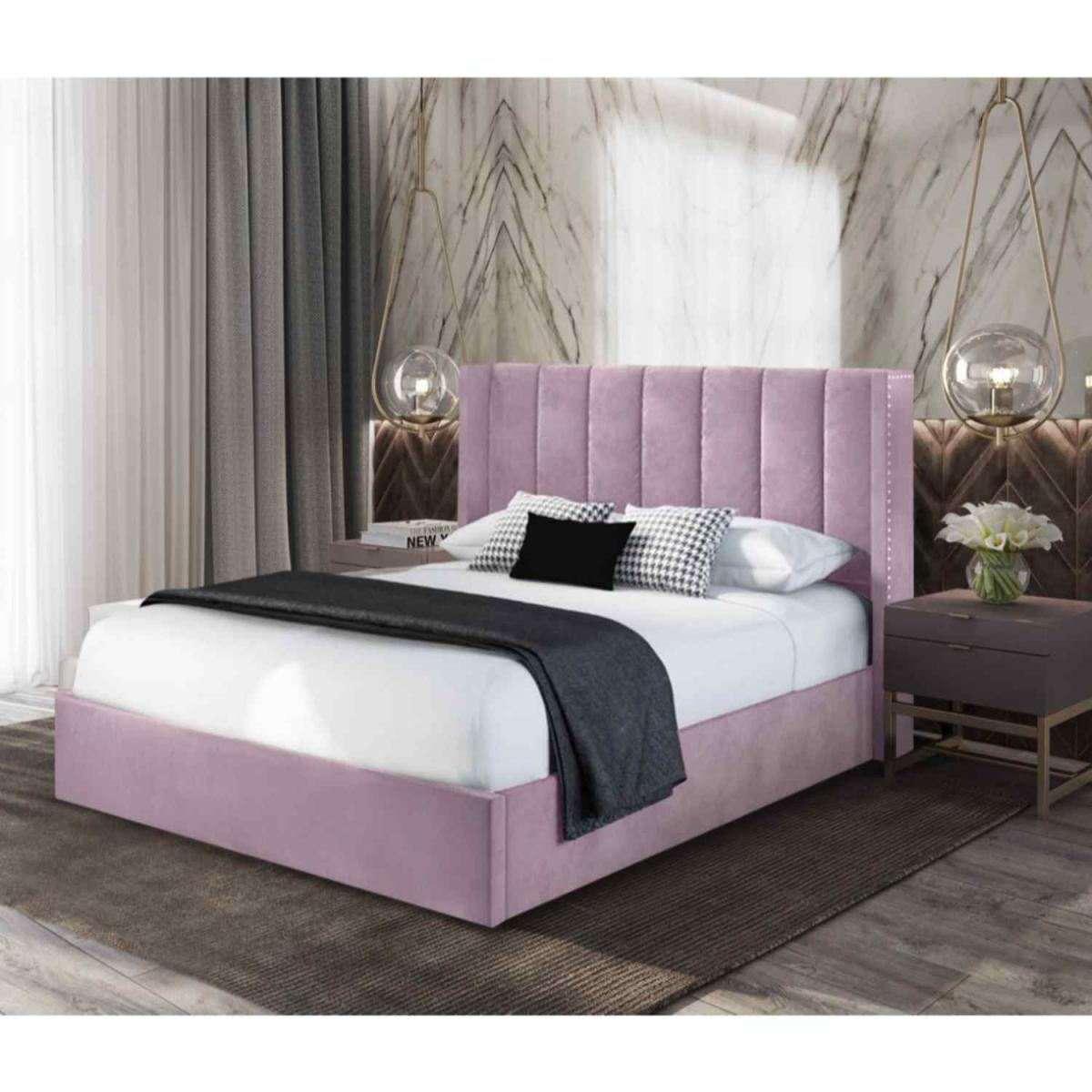 Transform your bedroom into a luxurious place to retired in the evenings with this elegant bed. This bed makes a bold statement even when incorporated with existing contemporary bedroom decor. Beautiful winged headboard with beading and footend with sleek upholstered panels, a deep foam padded headboard and hand carved and stylish metal feet. Quality solid straight slats improve comfort and mattress lifespan. The slats are manufactured with a solid construction for superb durability. The headboard features a contemporary squared design with deep padding. The bed is upholstered in a choice of quality colours with options to suit all decors.