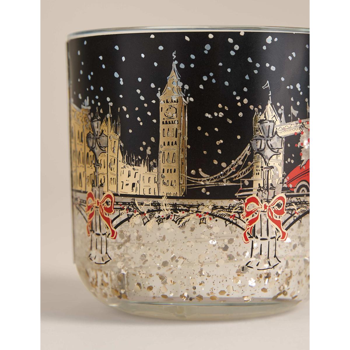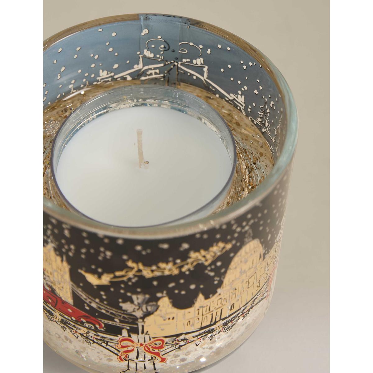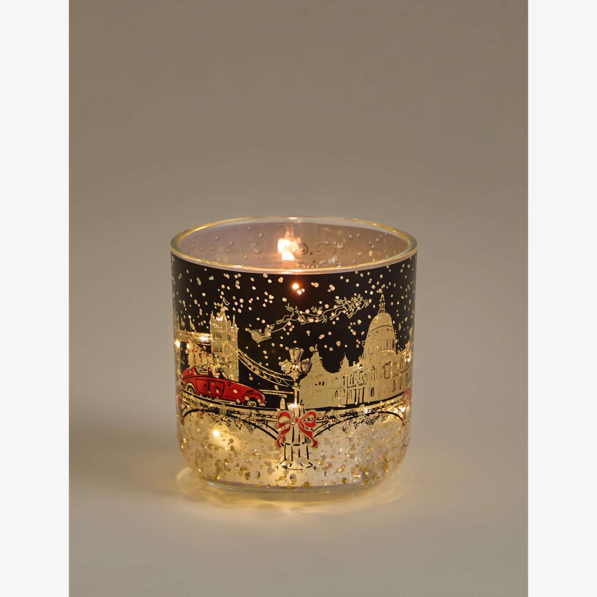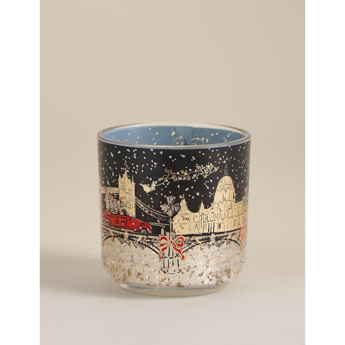 Imagine wandering through the wintery scene evoked in this townhouse Marks & Sparkle™ scented candle. It's medium-sized and sits in a glittery gel-filled glass holder with LEDs inside, which light up when the wick is lit to create a warm, festive glow. Pop this candle at the centre of your table, where it will burn for up to 20 hours. This fragrance is part of the Fruity family of fragrances. Fruity scents are refreshing and tropical and will often have notes of berries and non-citrus fruits such as pomegranate, apple and sweet pears.