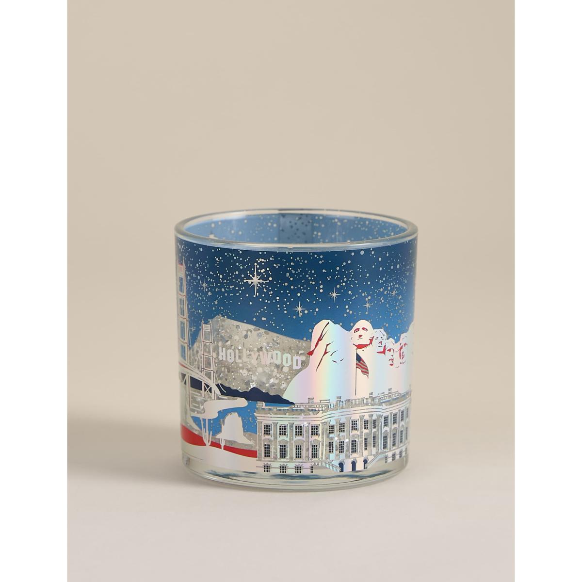 Delight your senses with this neroli, lime and bergamot-Marks & Sparkle™ scented candle. It's medium-sized and sits in a glittery gel-filled glass holder with LEDs inside, and features the iconic landmarks and buildings of America and lights up when the wick is lit. Pop this candle at the centre of your table, where it will burn for up to 20 hours.
