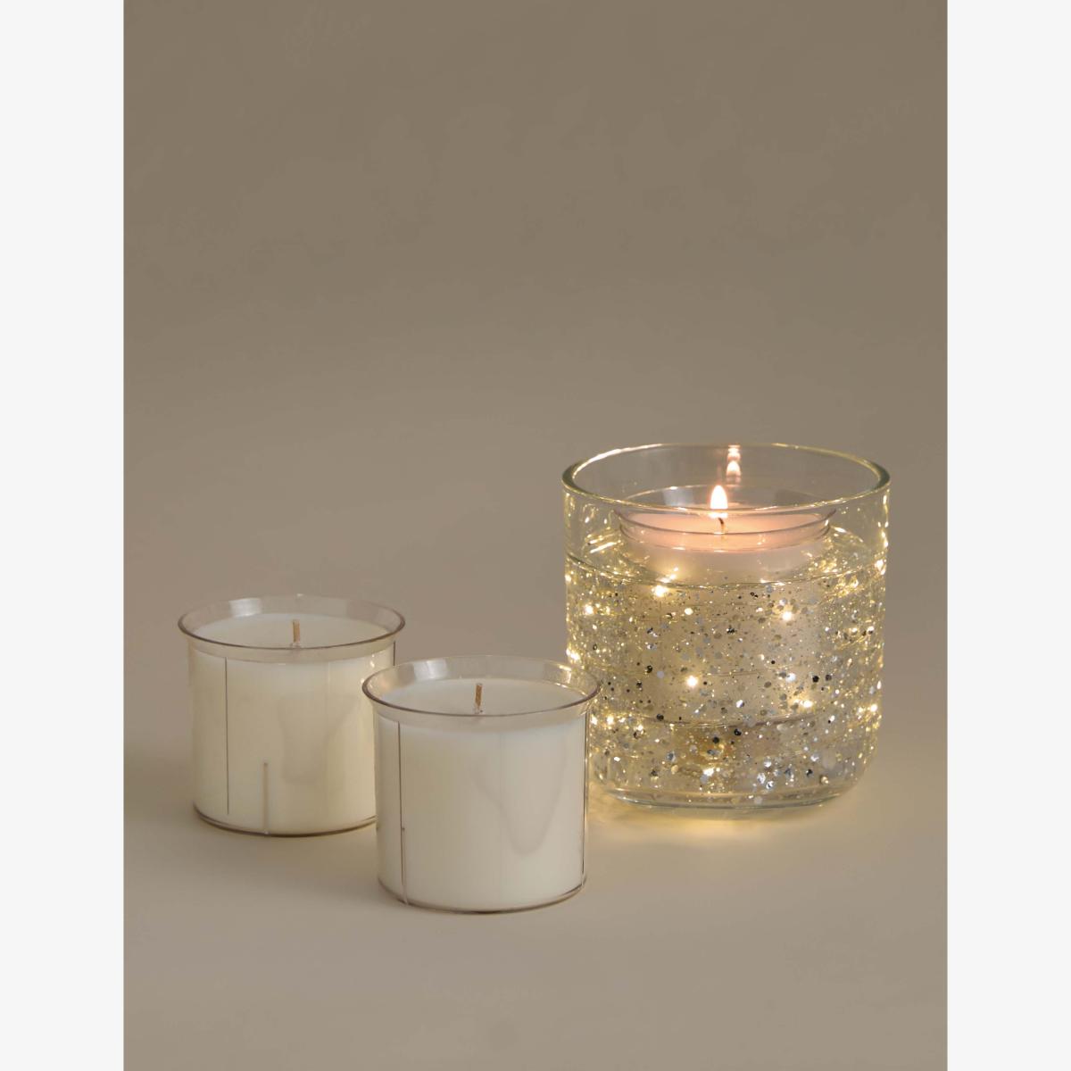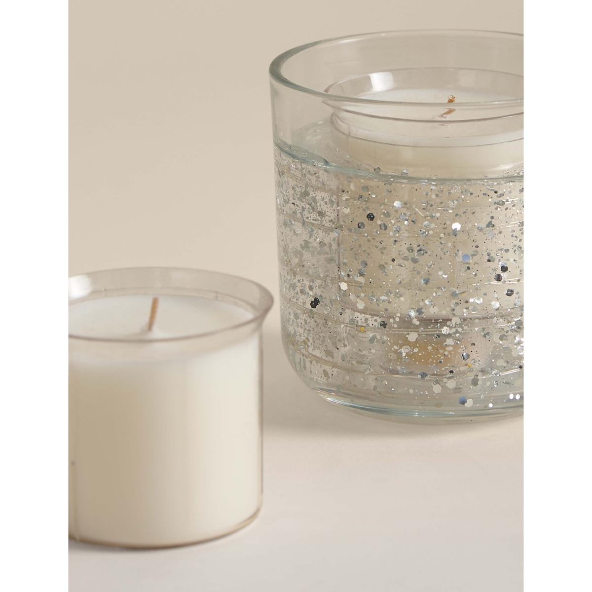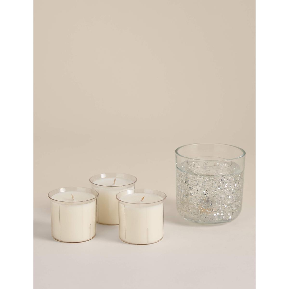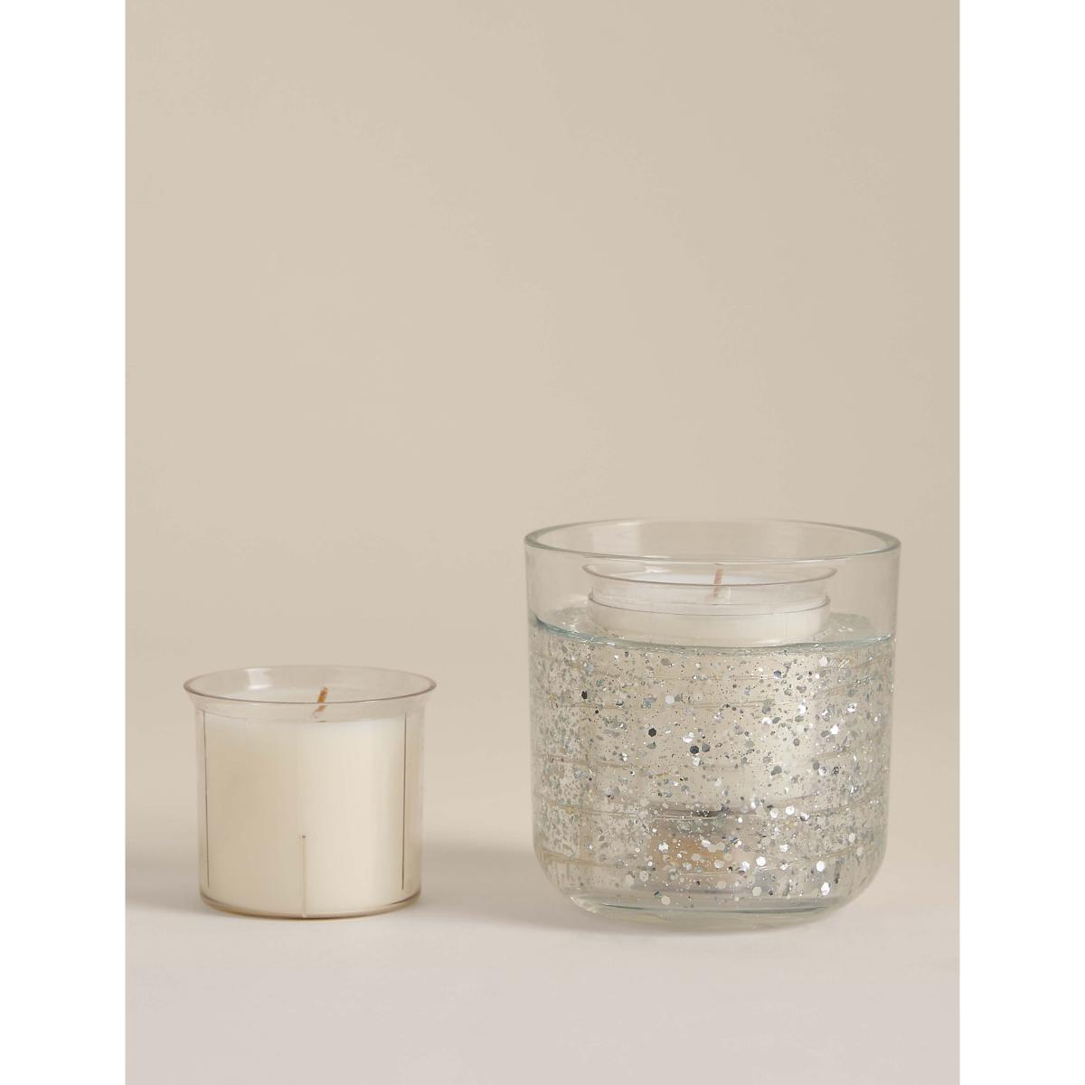 This Winter Spice scented candle from the Marks & Sparkle™ collection brings a cosy, festive feel to your room. The glass vessel is embellished with glitter for a sparkly effect. Light the wick to trigger the LED lights for an extra touch of twinkle. The set includes one full candle plus two easy-to-fit refills.