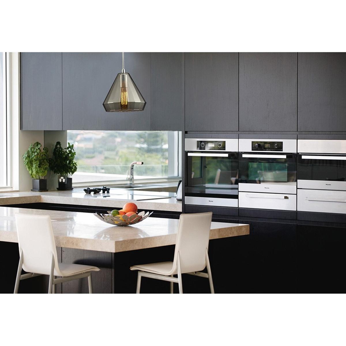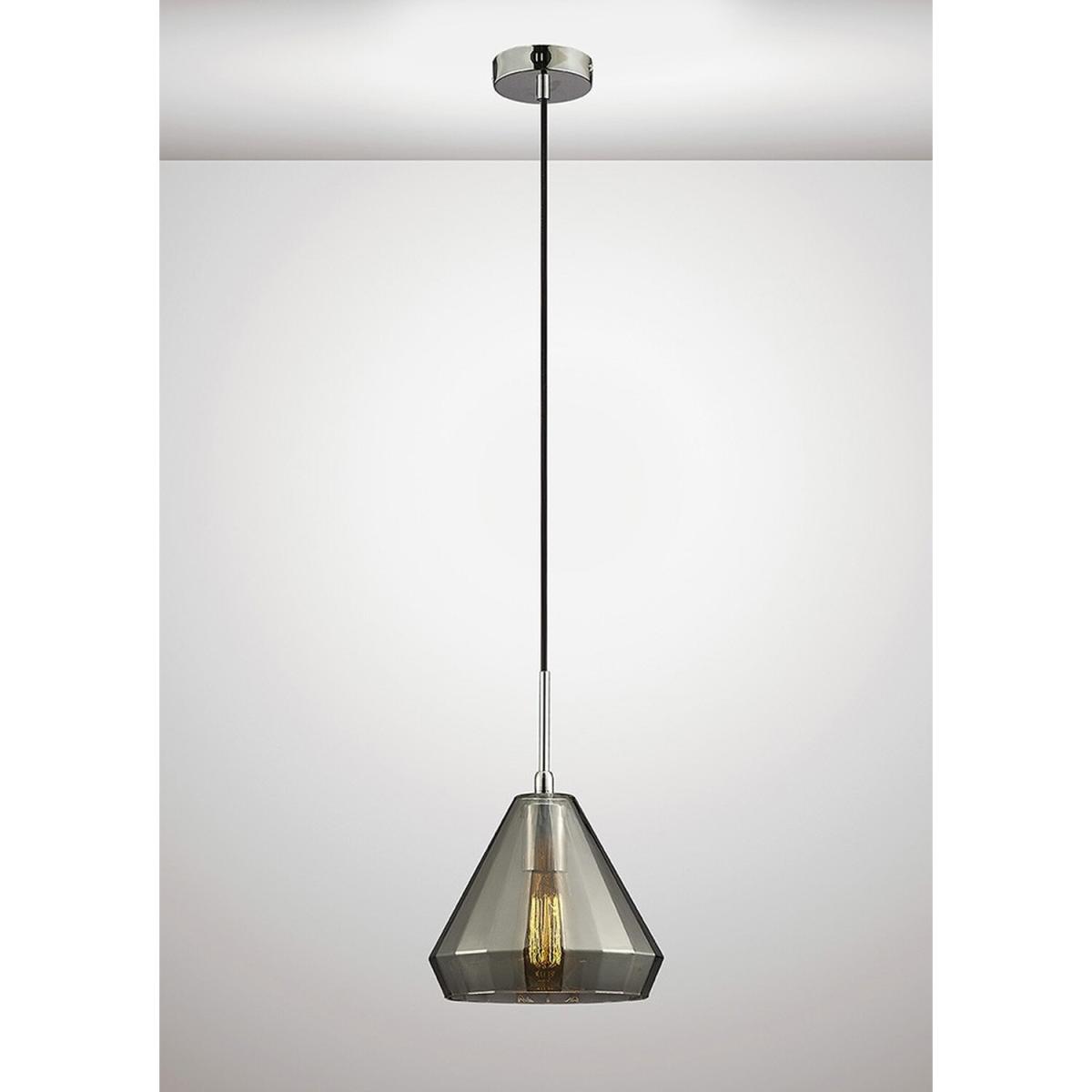 This is a range of retro single pendants which use smoked black glass to create a shade design that sits on an E27 lamp holder. The black suspension cable is in keeping with the darker theme of the light complimenting the smoked glass and polished chrome ceiling plate and lamp holder. These pendants are available in three designs a slim cone shade and medium wider cone conceal the lamp and lamp holder whilst a shallow shade option exposes the lamp used. These decorative lights are perfect for bringing character to any room setting. Each pendant takes a maximum 60W lamp.