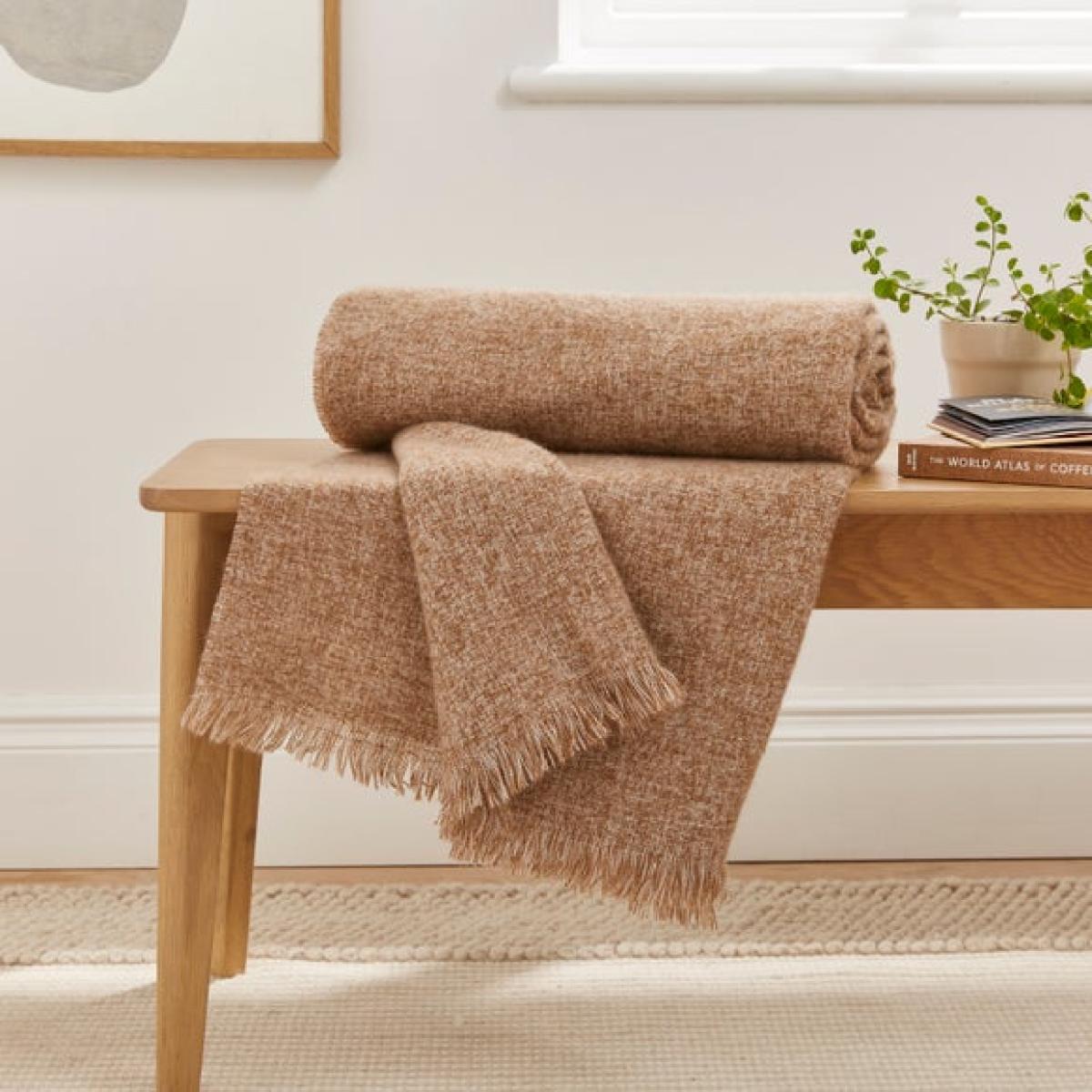I love this throw for its inviting texture and versatile size, making it perfect for adding a cosy touch to both sofas and beds. Its neutral, warm tone pairs well with various colour schemes, from muted tones to darker palettes, helping to soften and warm a space. As a stylist, I’d suggest draping it casually over the arm of a sofa or folding it neatly at the foot of the bed for a polished look. This throw works particularly well in contemporary or Scandi-inspired interiors thanks to its understated elegance and tactile appeal. For added interest, consider layering it with patterned cushions or contrasting textures to create a welcoming, layered aesthetic that invites comfort and style.