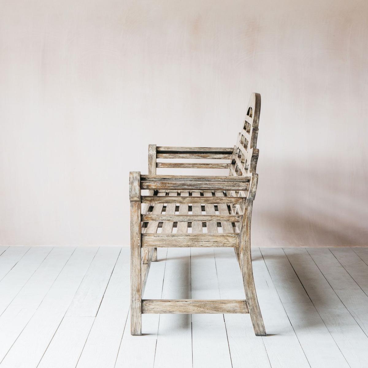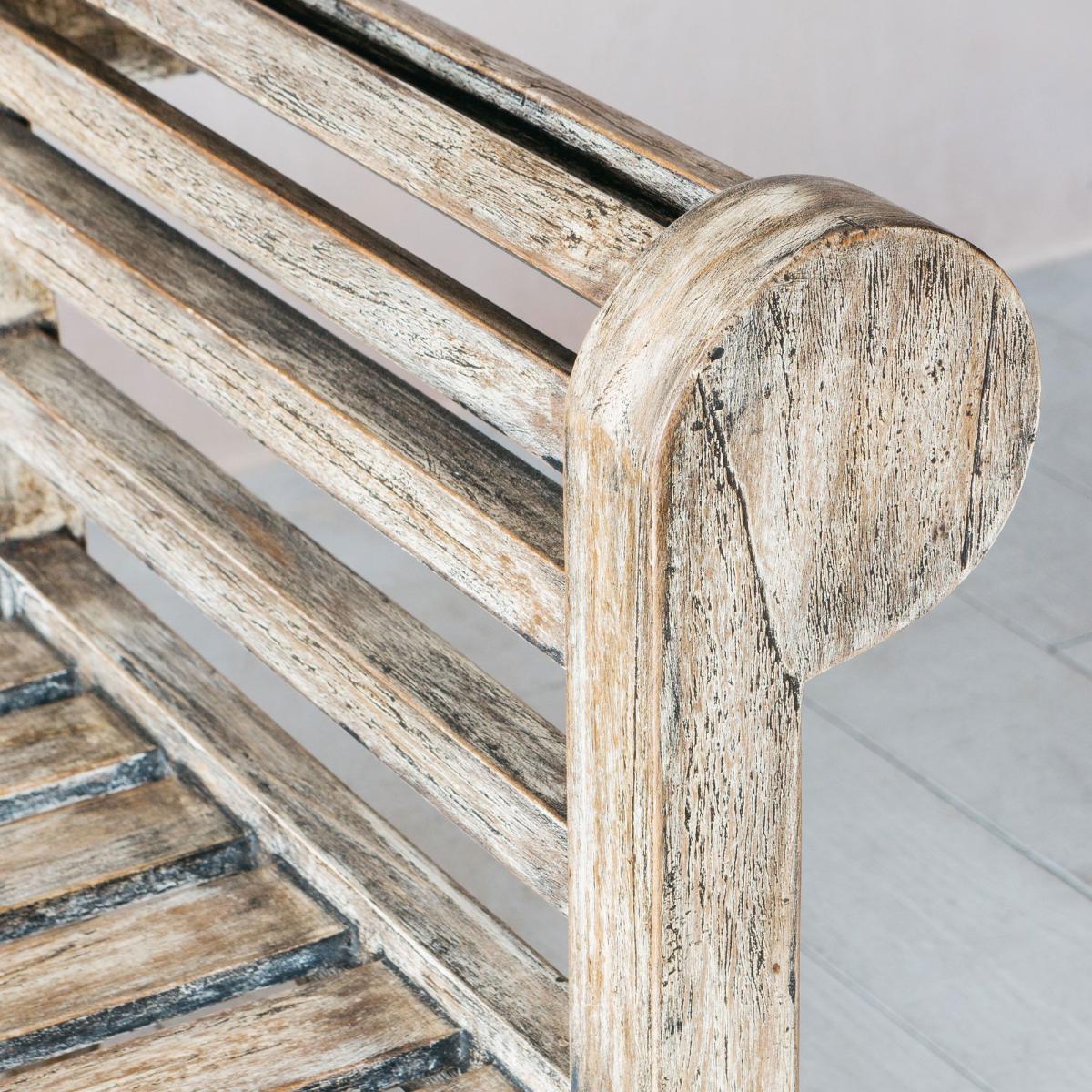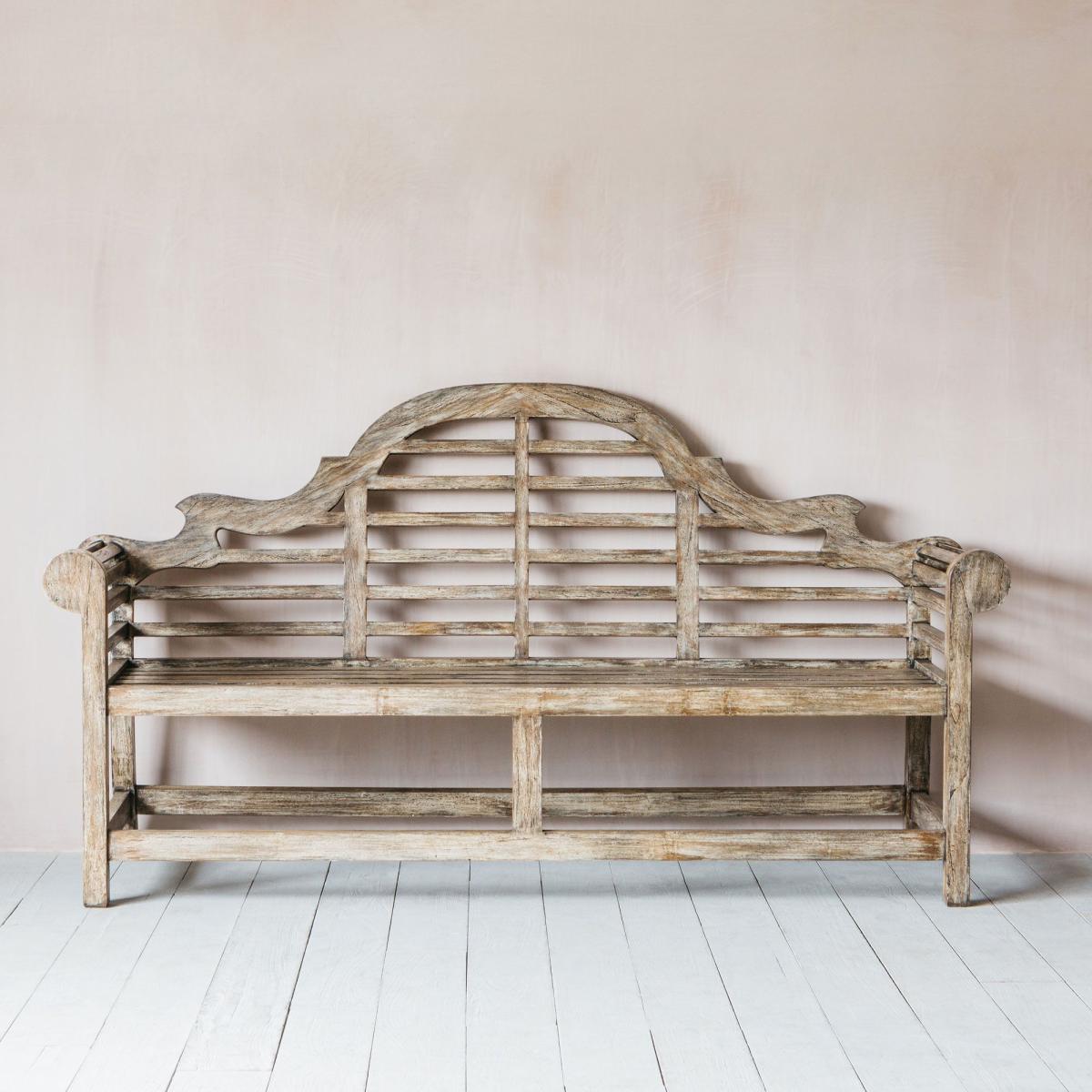 A classic three seater bench handcarved from teak with a washed slate grey finish complete with an ornate back and scrolling curved arms. Throw on some colourful seat pads for a comfortable afternoon relaxing in the garden.