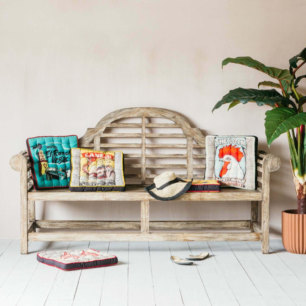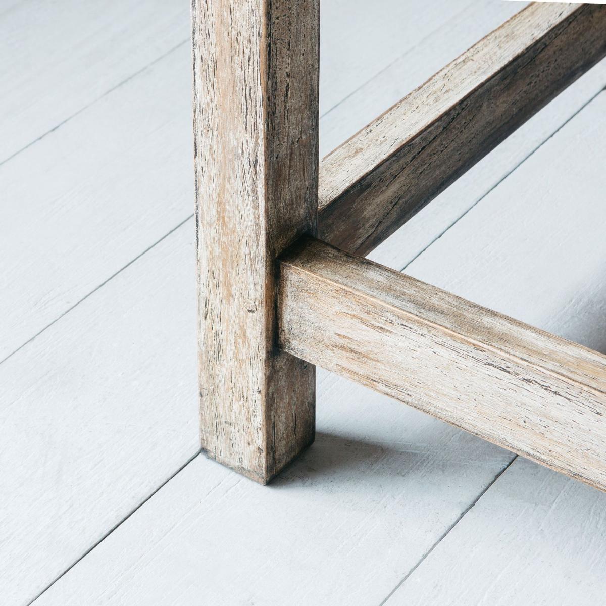 I love this bench for its versatile, rustic character-perfect for adding a touch of laid-back charm to both contemporary and traditional interiors. It works particularly well in hallway schemes, living rooms, or even in a bedroom as a colourful, yet functional statement piece. When styling, consider layering with cushions or throws for extra comfort and visual interest, or pairing it with a runner to create a cosy, approachable vibe. Its natural wood finish also lends itself well to layered textures and natural materials, making it adaptable to lots of colour palettes from soft neutrals to bold, vibrant shades. Just remember to keep it simple and let the craftsmanship shine through.