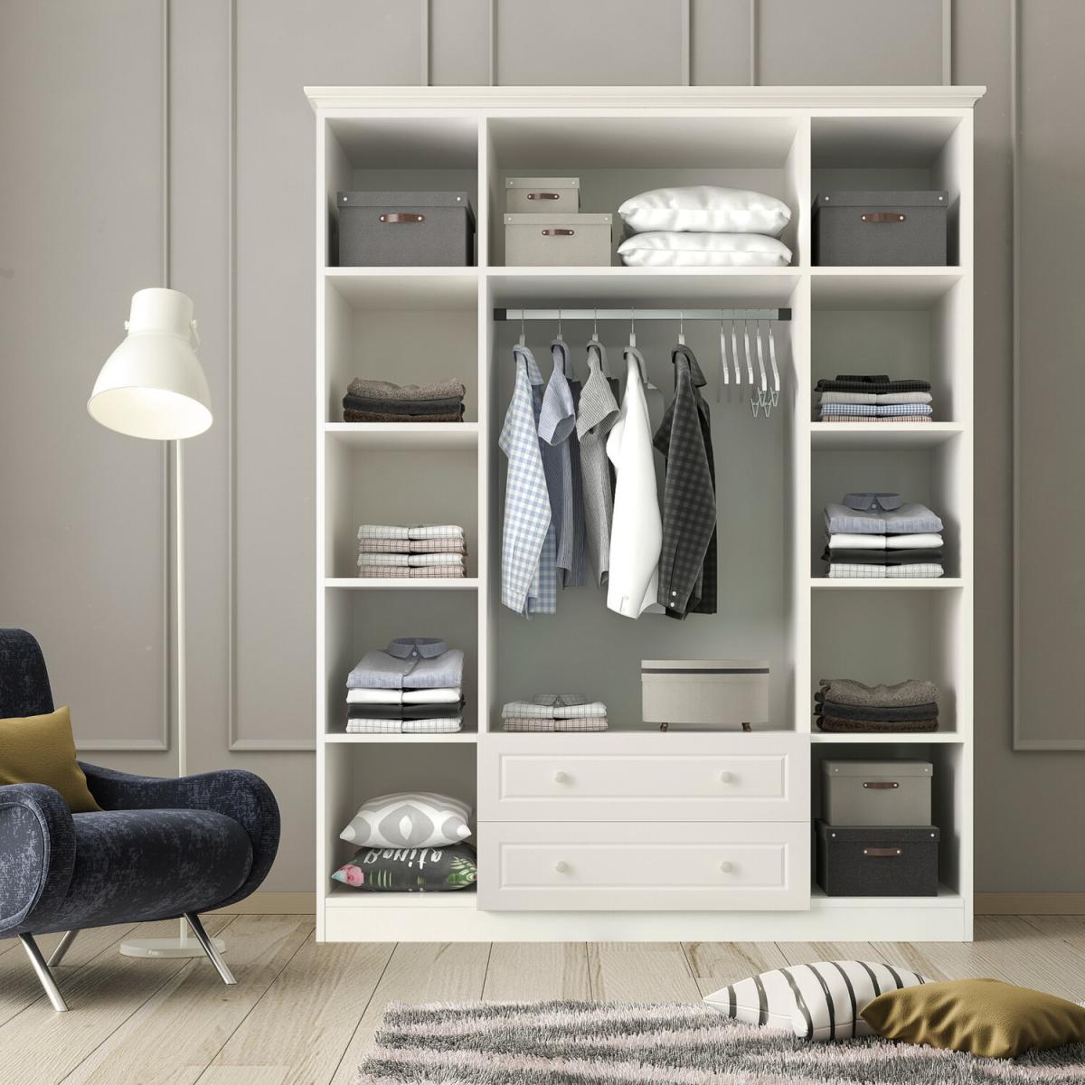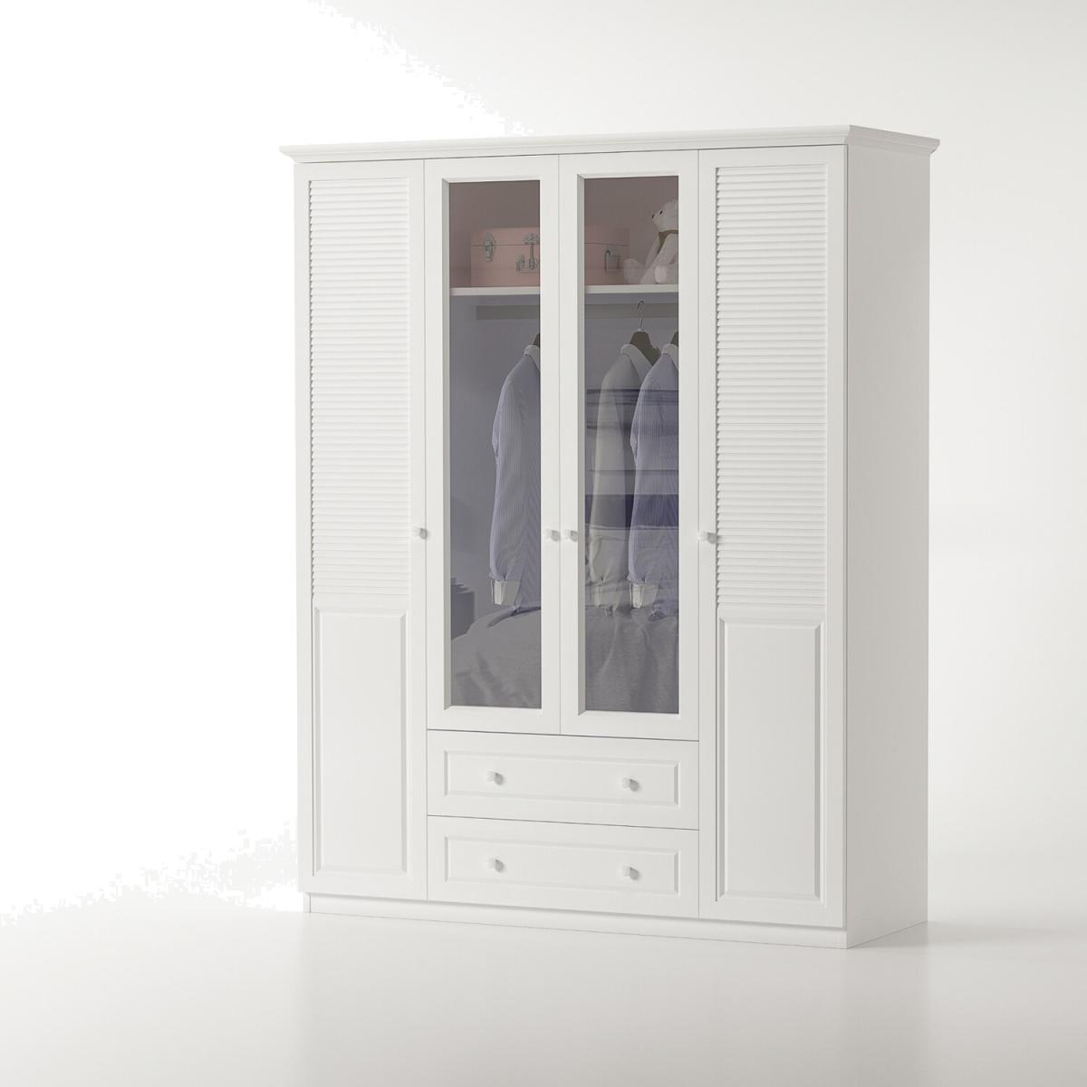 MARLA 4 Door 2 Drawer Mirrored Wardrobe, White - White