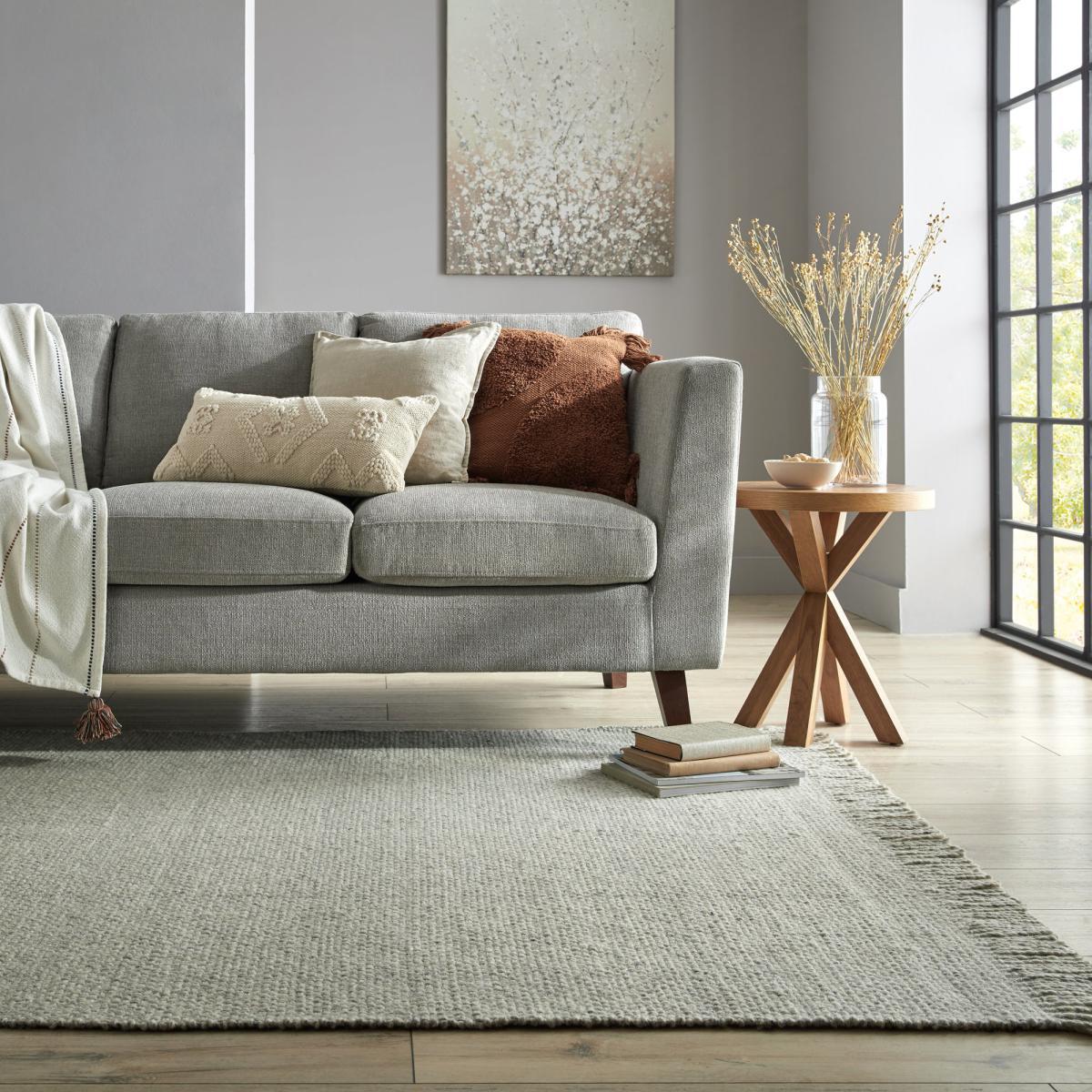 Use the Marla Wool Rug to create a natural scandi look in your space. Pairing grey marl shades with a knotted effect, the Marla Wool Rug injects a sense of calm. Hand-woven by skilled rug artisans in a wool blend composition and hand-finished with a tassled effect. The wool blend yarn embraces naturally occurring warmth and sound insulating qualities. Try the Marla rug in bedrooms and living rooms for some laid-back style. This is a hand-made flatweave rug. When opening, re-roll your rug pile out and leave in a warm room for 24 hours before putting in place, this will help to reduce wrinkles and curling from packing. Do not pull any loose threads, please cut them carefully with scissors to remove. Avoid prolonged exposure to direct sunlight as this may cause fading of the colour. Turn your rug regularly to ensure even wear and to reduce pressure marks from furniture. Wool fibres may shed when new and during use, this is a characteristic of this product and is not a defect and should reduce with normal use and regular vacuuming. Before using any cleaning products on your rug, test on an inconspicuous area first to ensure it does not affect the colour. Clean spills immediately by blotting with a clean dry white cloth - do not rub as this may stain the fibres. Vacuum your rug regularly to remove everyday dirt, we recommend the use of a suction type vacuum cleaner as a rotating vacuum brush can cause damage to the pile surface. We recommend the use of an anti-slip mat beneath your rug to prevent it from slipping and sliding out of place. Latex is used on the back of this rug. Please do not leave babies or young children unsupervised on this rug.