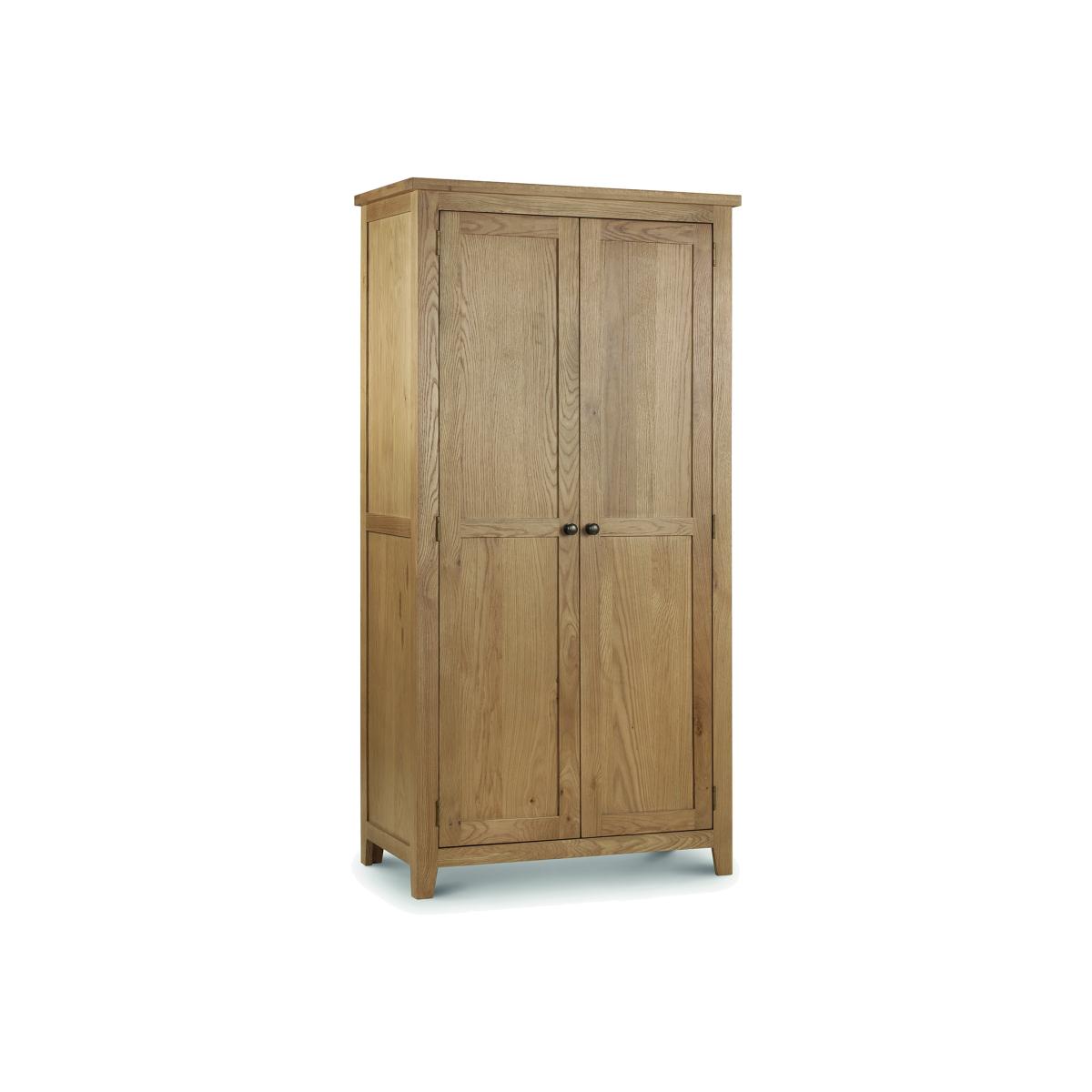 Using a combination of style and practicality, the Julian Bowen Marlborough 2 Door Wardrobe is a timeless classic, beautifully crafted from oak with a waxed oak finish. Perfect for storing away your shirts and dresses on the hang rail, this wardrobe will protect your favourite garments from dust and dirt. The panelled doors add to the simple design, giving the wardrobe depth and character, and it stands a little off the ground on wooden feet. The chunky design makes this wardrobe sturdy and durable, creating a perfectly robust and durable storage space you can use time and time again. The stylish design works perfectly with traditional interior styling and it is ideal to place in any bedroom or guest room, creating a space saving solution for those with limited storage.