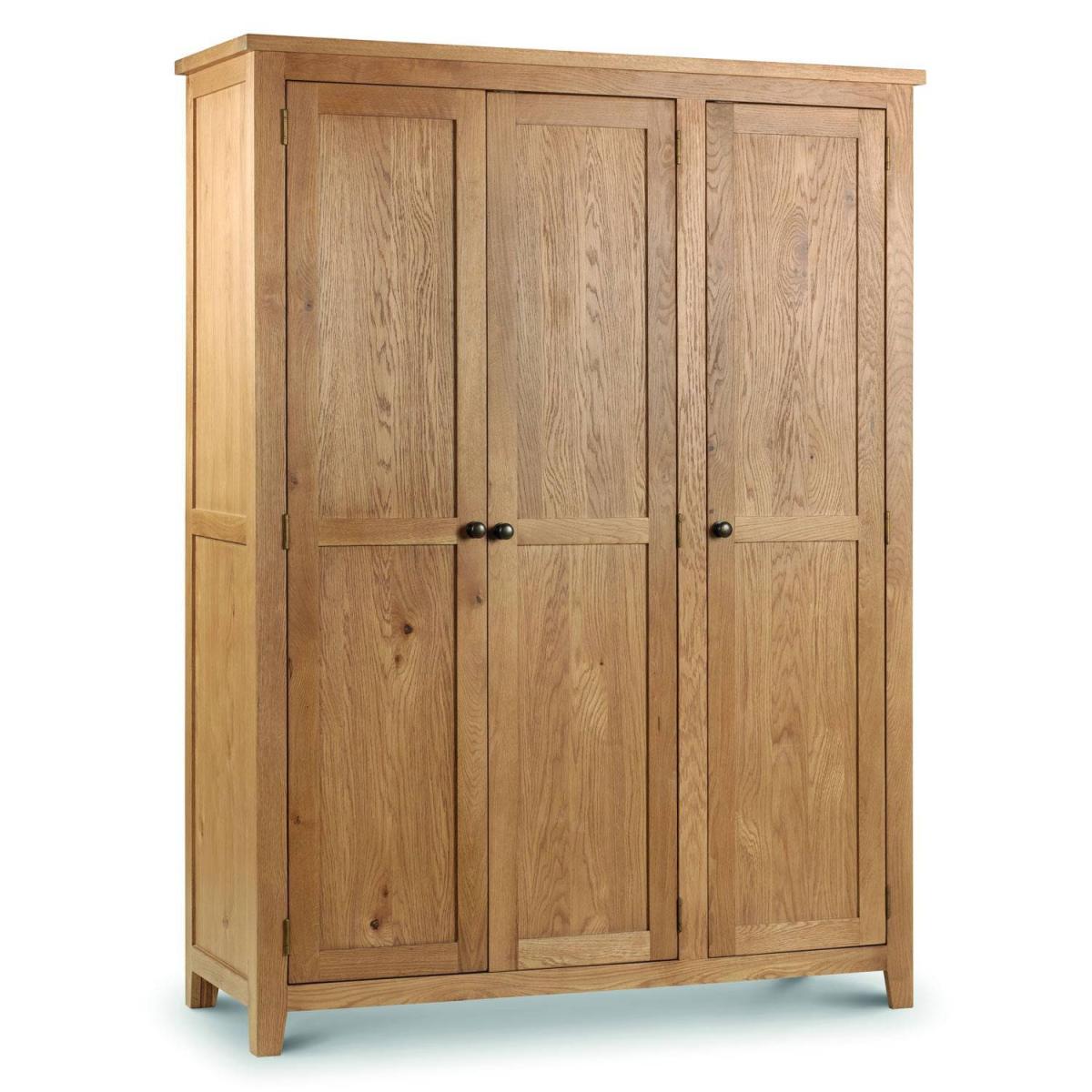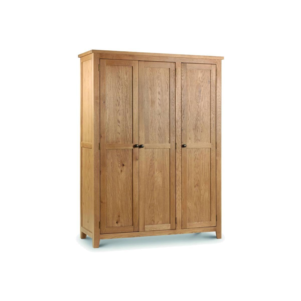 Using a combination of style and practicality, the Julian Bowen Marlborough 3 Door Wardrobe is a timeless classic, beautifully crafted from oak with a waxed oak finish. Perfect for storing away your shirts and dresses on the hang rail, this wardrobe will protect your favourite garments from dust and dirt. Along with the hang rail are four internal shelves, perfect for holding any bedding, bags, shoes and more, giving you plenty of storage to use. The panelled doors add to the simple design, giving the wardrobe depth and character, and it stands a little off the ground on wooden feet. The chunky design makes this wardrobe sturdy and durable, creating a perfectly robust and durable storage space you can use time and time again. The stylish design works perfectly with traditional interior styling and it is ideal to place in any bedroom or guest room, creating a space saving solution for those with limited storage.