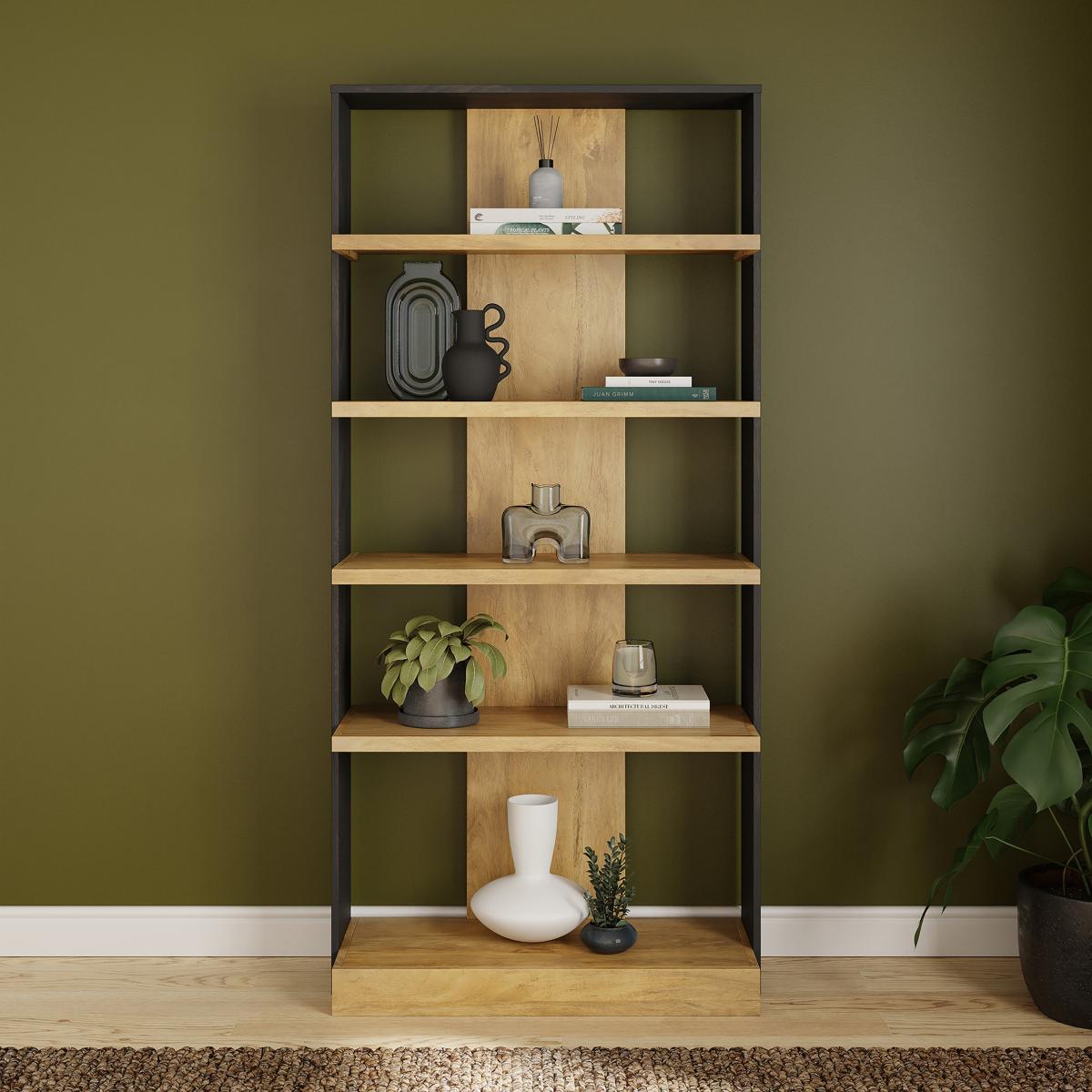 I’m a big fan of this chunky open shelving unit because its mix of warm oak-effect boards and slim black frame works equally well in industrial, Scandi and contemporary homes. It’s tall enough to make a feature of books and ceramics without overwhelming a room, and the open sides keep the look light. For styling, group objects in threes or fives and vary heights - stack a couple of art books horizontally, then add a small plant or candle on top. Use woven baskets on the bottom shelf to hide cables or odds and ends, and leave at least one shelf partly empty to avoid a cluttered feel. Anchor it securely to the wall for safety.