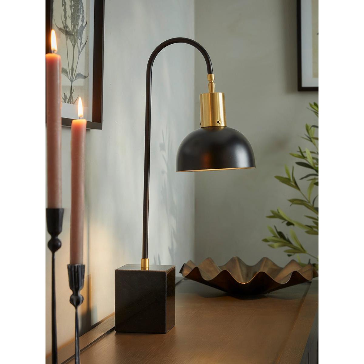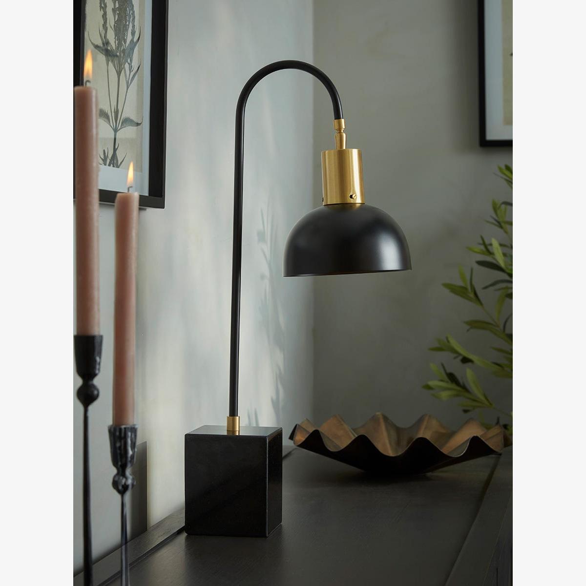 With a marble base, our sleek and stylish Marlene lamp has a gracefully curved arm in black with a domed matte black shade, which is finished with modern gold hardware. Its moveable shade gives it the ability to point in any direction, perfect for using as a bedside lamp, desk lamp or table lamp to illuminate your space exactly as you need it to.