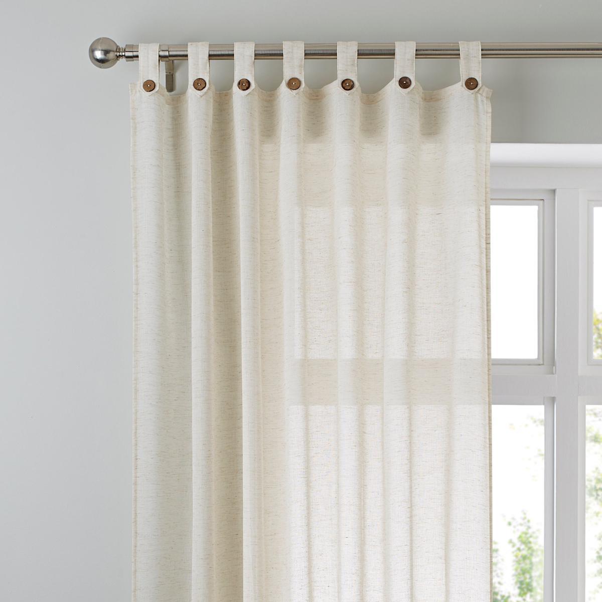 Fabricated from a linen blend, this natural-coloured sheer panel is available in a choice of sizes and features an easy-to-install tab top header embellished with brown buttons.